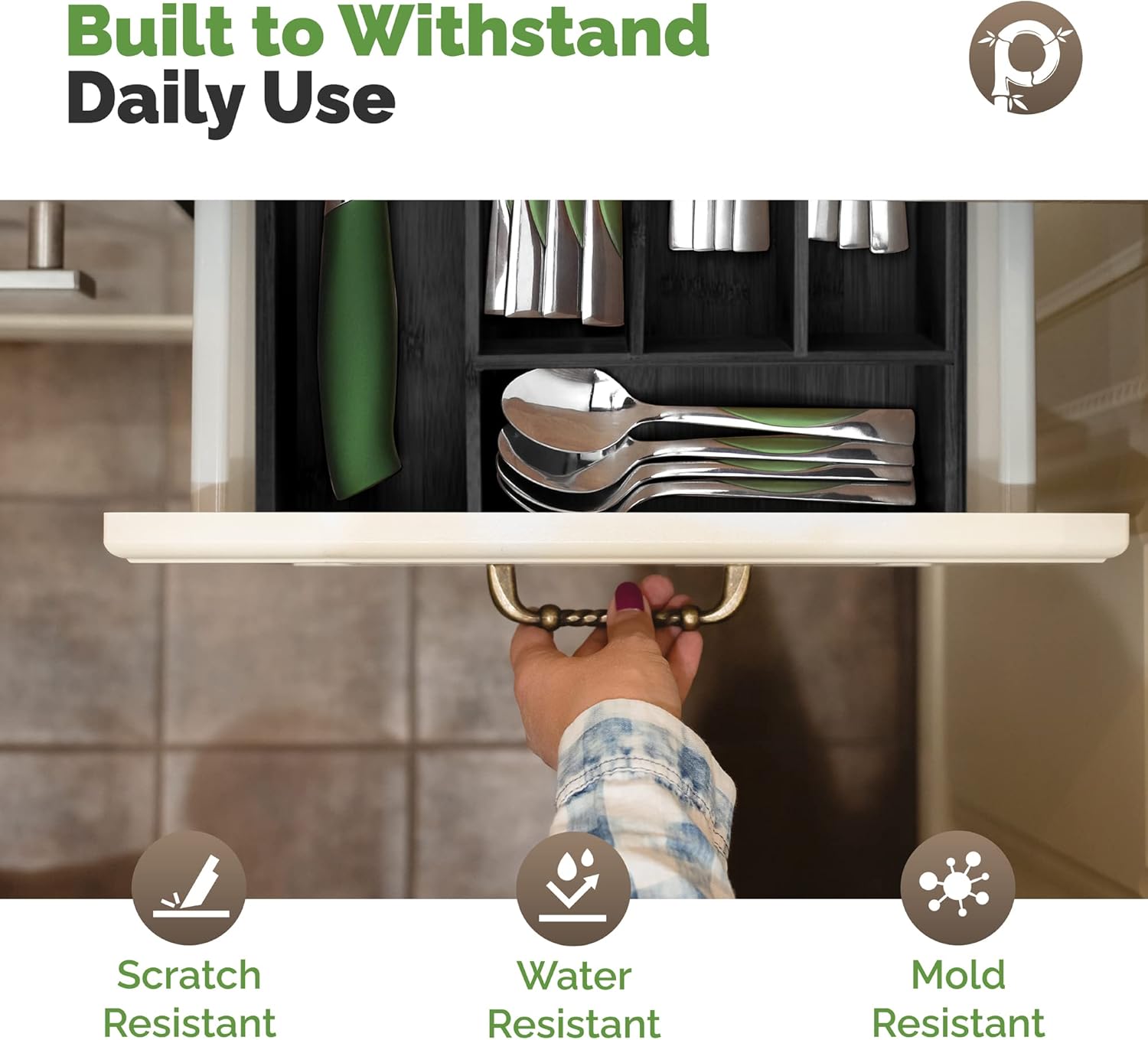 - SAFER FOR YOUR FAMILY: We understand that you want to keep your silverware safe and secure, which is why we use the highest quality Moso bamboo in our drawer organizer kitchen utensils. Our flatware holder won't be vulnerable against water like other drawer storage organizers; it's 100% natural with naturally water-resistant properties!