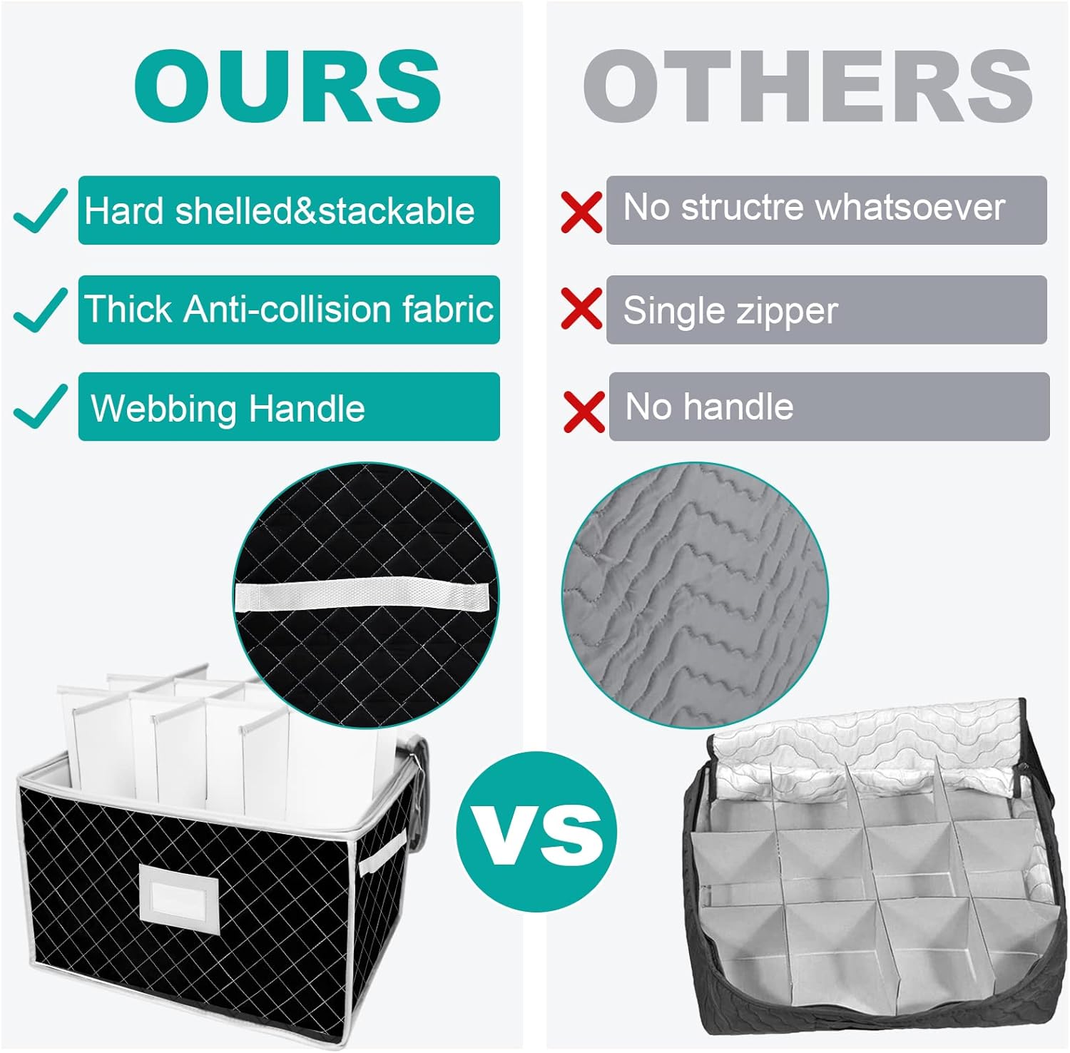 - 🥂【 24 Cells】: The size of this VERONLY wine glass storage box is 15.5" x 12.5"x 10", 2pcs in a pack, each with 12 dividers, which is large capacity to hold 24 different kinds of glassware, such as wine glass, champagne flute, stemless crystal glasses.