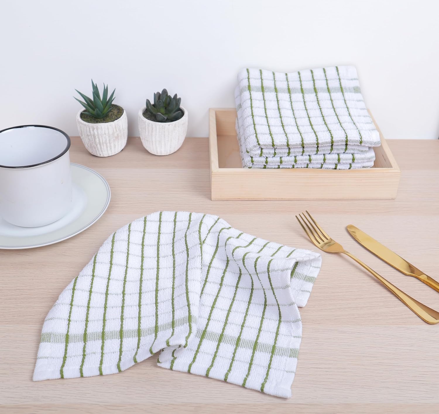 AMOUR INFINI Kitchen Dish Cloths Set of 8 - Ultra Soft, Highly Absorbent, Quick-Drying Terry Cotton Dishcloths 12"x12" Inch Wash & Cleaning Cloths for Kitchen & Dishwashing (Green)