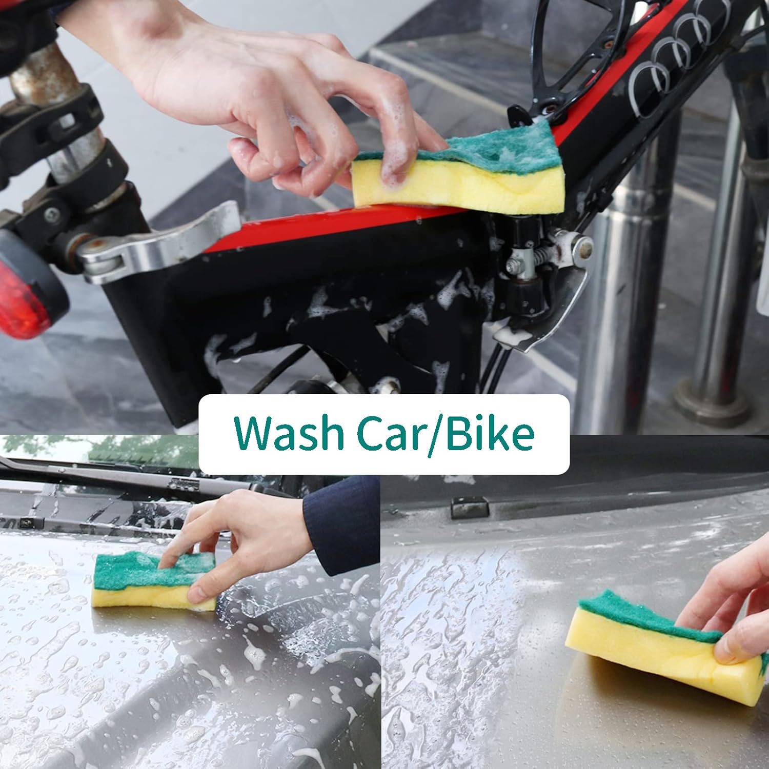 - Two-Sided: The kitchen sponges is composed of two different materials. The delicate yellow soft sponge layer is used to clean special glassware, and the green frosted layer can remove hard dirt on pots and pans