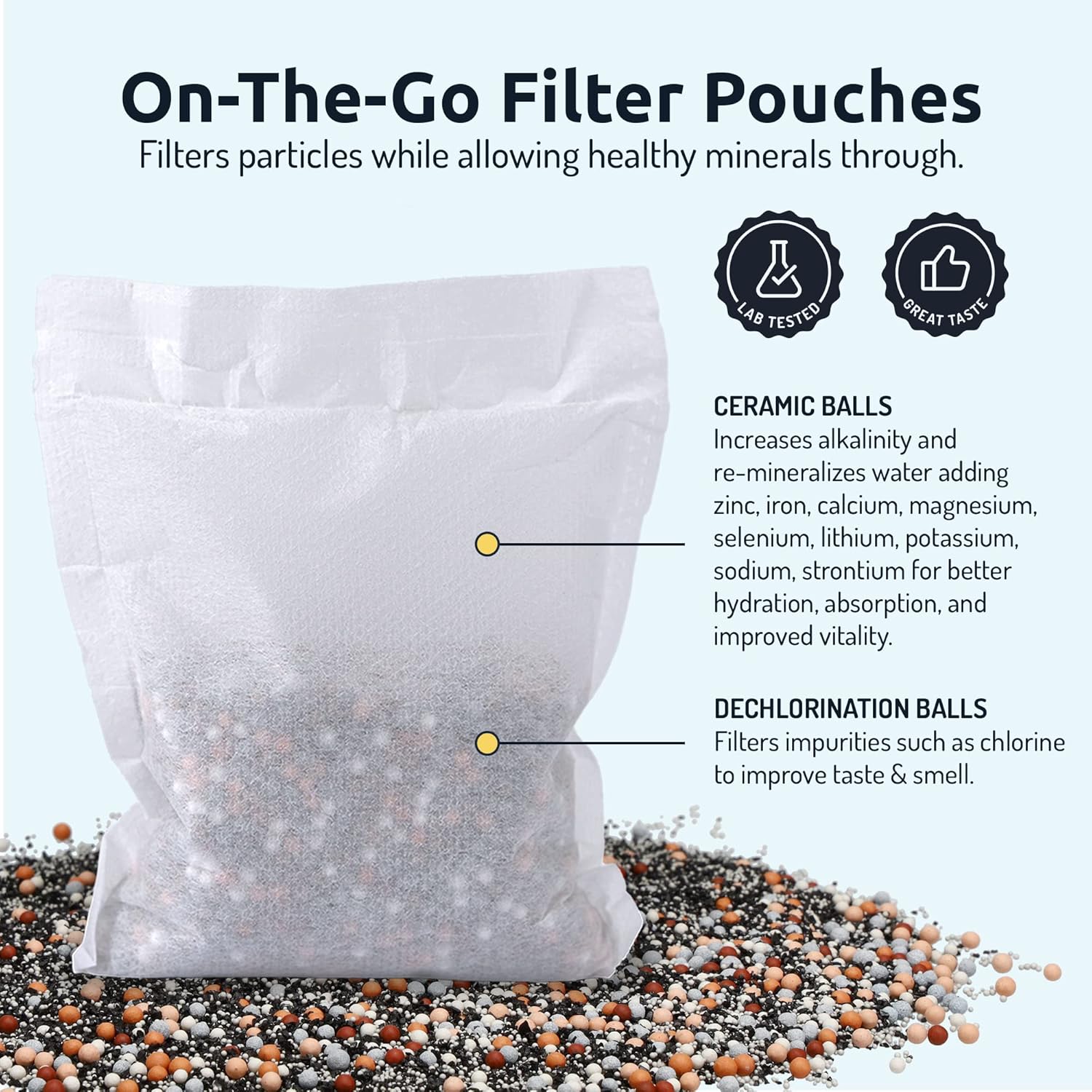 - Huge Filter Capacity - Each pH Vitality Alkaline Water Pitcher Filter can filter up to 1.9 liters of water, making it ideal for home, office, and outdoor use. Its on-the-go filter pouch can filter up to 1700 cups / 105 gallons / 400 liters of water throughout its lifetime ensuring long-lasting filter life and usability. Be it for drinking, cooking, brewing coffee, or tea, our vitality filter is surely an affordable solution to keeping you and your family healthy!