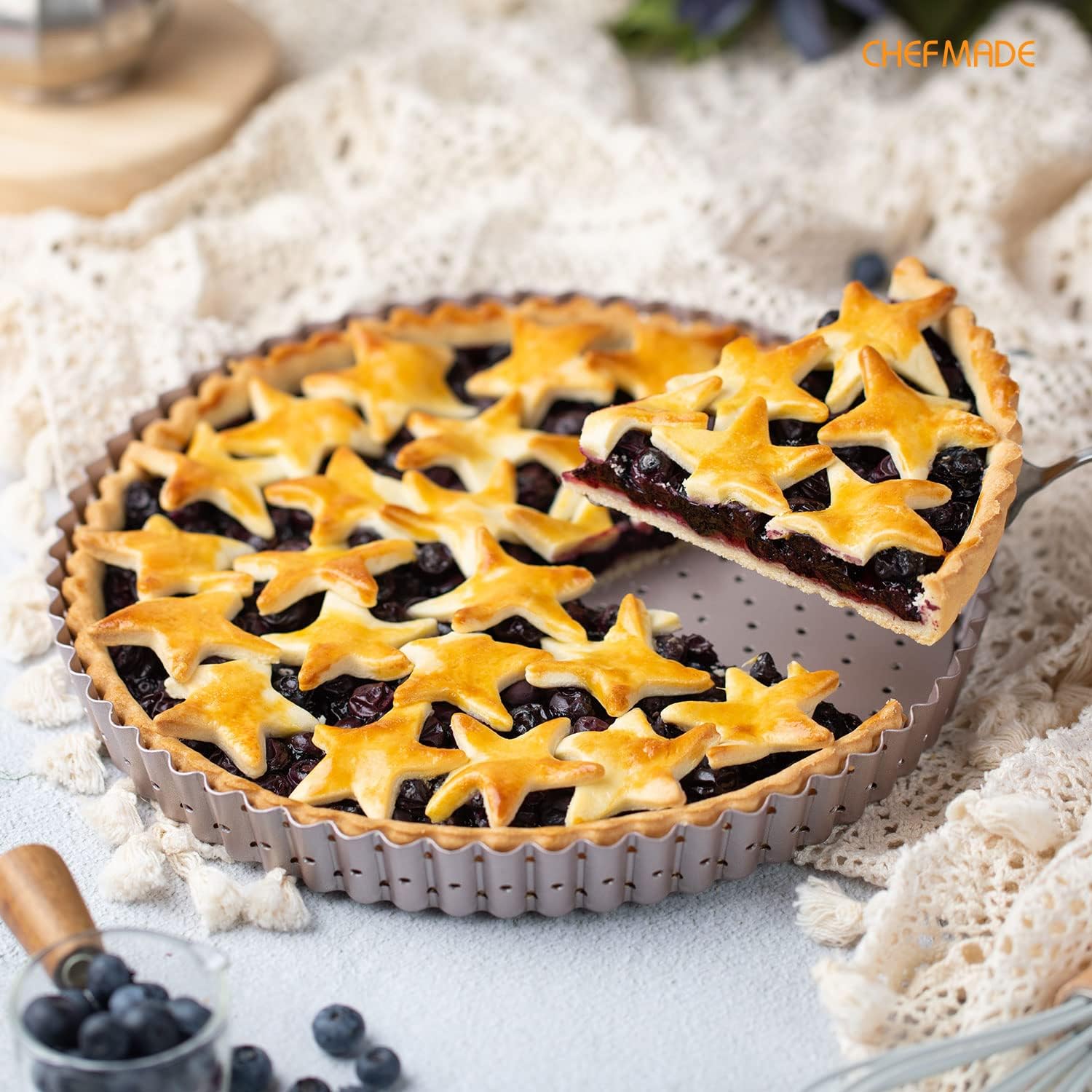 CHEFMADE 9.5-Inch Round Tart Pan with Holes Removable Loose Bottom, Non-Stick Carbon Steel Quiche Pan for Oven Baking (Champagne Gold)