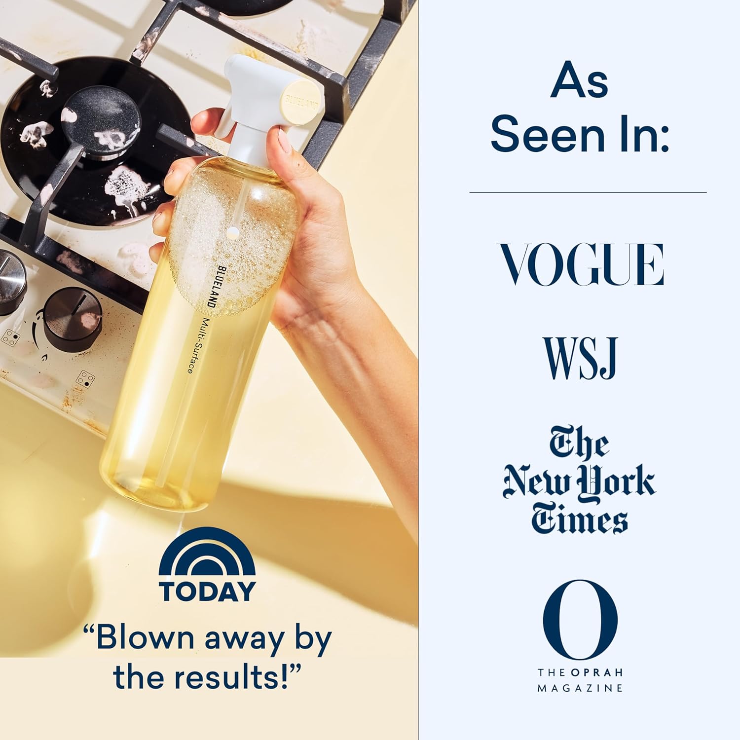 BLUELAND Multi-surface Cleaner, Starter Set, Fresh Lemon Scent, Spray Bottle with 4 Refill Tablets, All-Purpose, Eco-Friendly Cleaning Supplies, 4 x 24 Fl oz