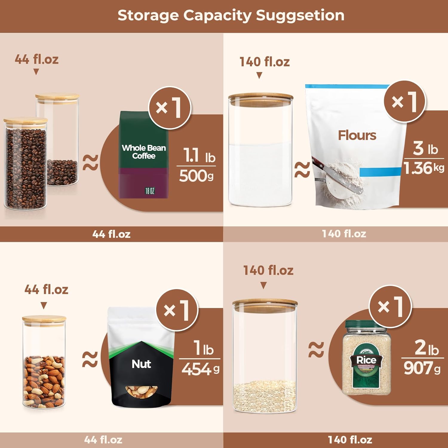 - Thickened Glass Jar: Crafted from enhanced 3.3 mm borosilicate glass. The clear construction, coupled with a stylish lids, ensures easy visibility of contents with just a glance. Experience the convenience of effortlessly monitoring your stored items.