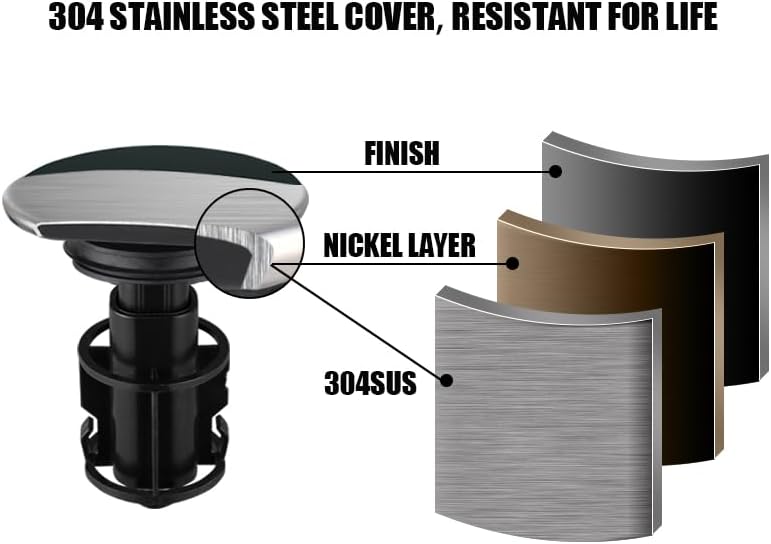 - ✓【304SS TOP SURFACE+ABS&PP BODY】The top surface of bathroom sink drain is made of high quality 304 stainless steel with a multi-layer matte black finish. Bottom pipe is made of PP and ABS. This combined structure not only resists rust, but also resists corrosion and cracking.