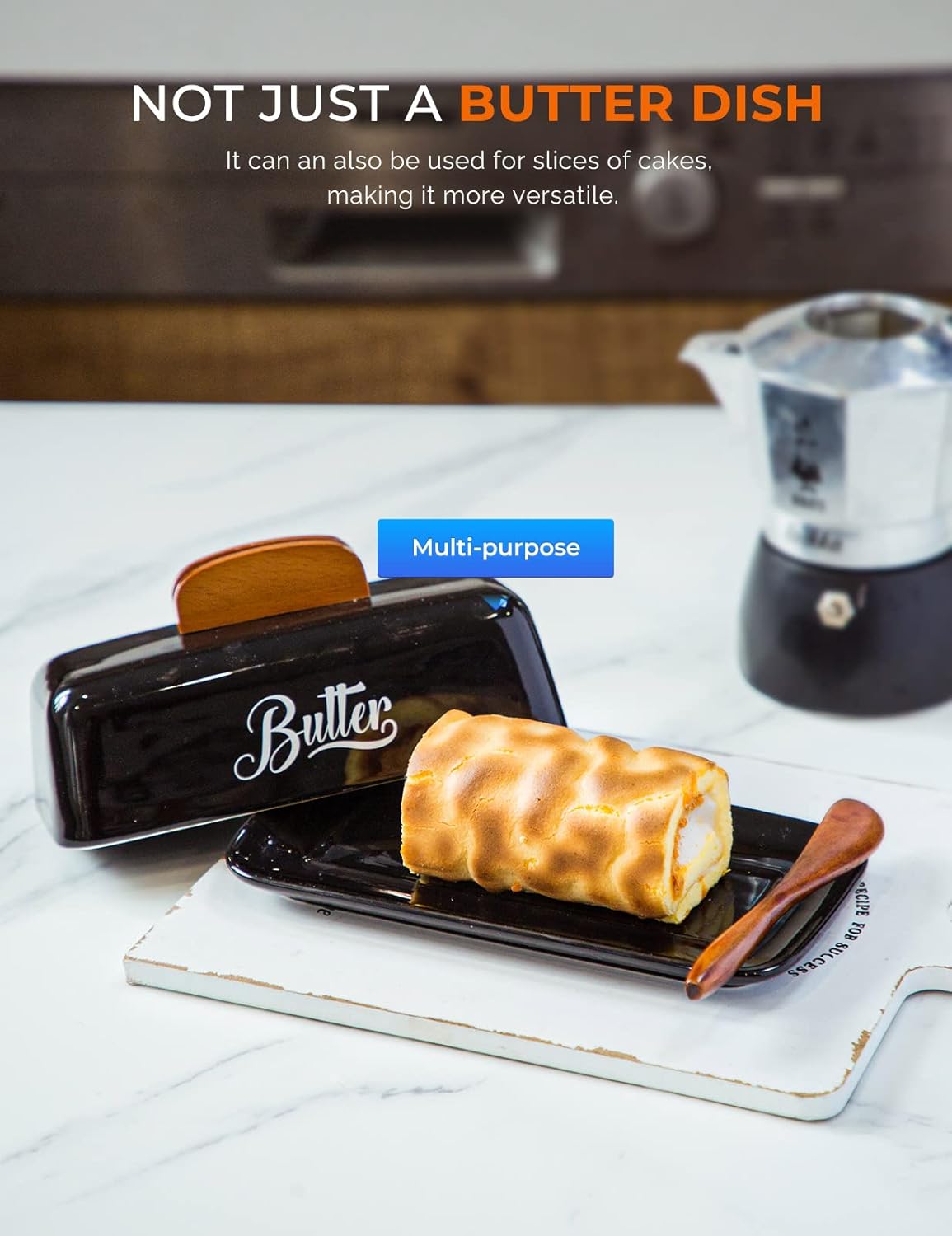 - 【HIGH QUALITY AND EASY TO CLEAN】: The butter dish is made of high-quality ceramic, which does not contain harmful chemical elements such as lead. Compared to plastic or metal butter containers, they are more durable, safer, and healthier. The ceramic surface is also smooth, making it easy to clean.