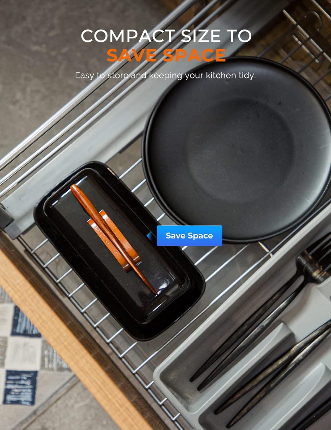 - 【INNOVATIVE DESIGN-CLAMPABLE KNIFE CLIP】: Compared to traditional butter dishes, we have innovated our handle, which has a clip to hold our included butter knife firmly in place. You don't have to spend time looking for a knife anymore and there’s always a convenient place to put it after use.