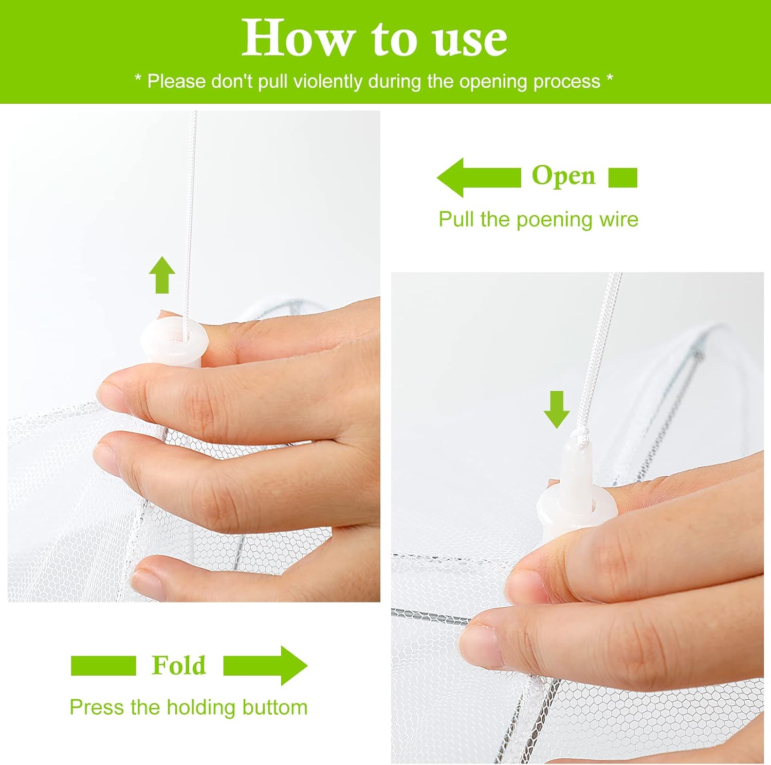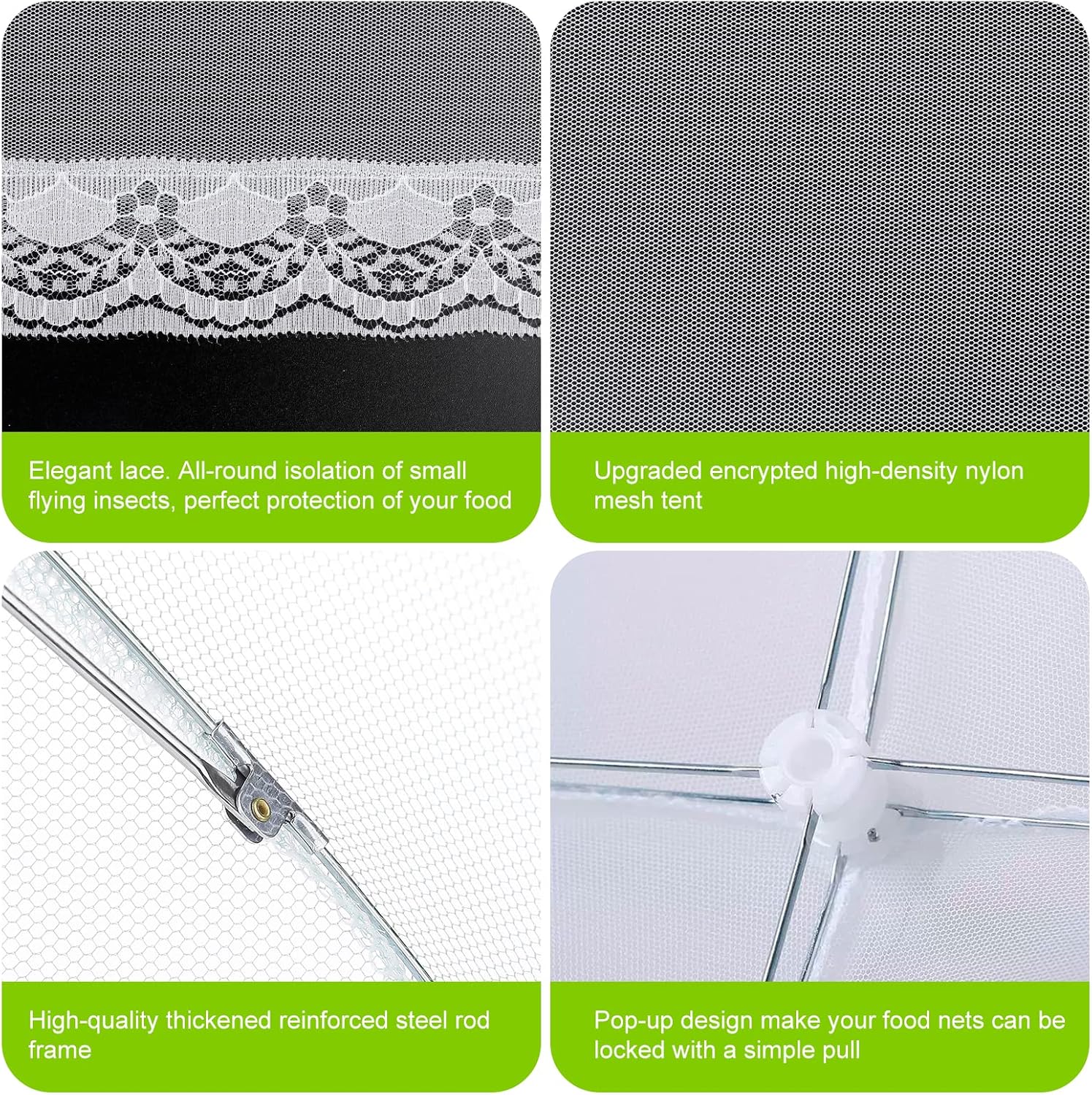 - ❤【 Portable Umbrella Shape】These food cover net with pop up design, pull up the wire and then open the food net cover like a tent, press and pull down to closed up like an umbrella, easy to use, small enough to easily store in picnic baskets.