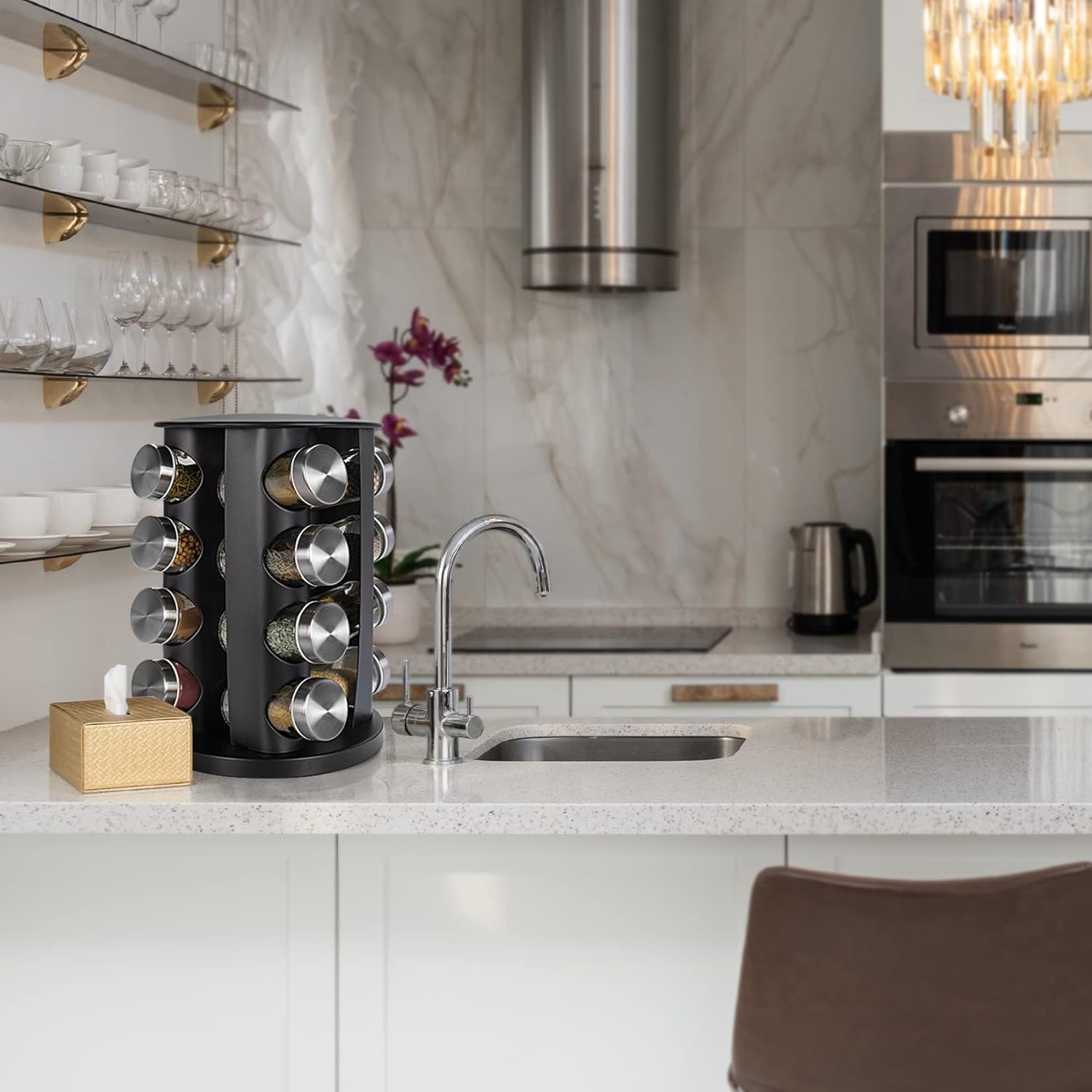 - PERFECT FOR YOUR KITCHEN AND DECORATION - The spice rack can be used in homes, restaurants and party buffets to enhance the ease of use and practicality of meals. The unique exterior design is also very eye-catching, no need to hide in the cabinet, no matter what your interior style, the spice organizer is a great decoration accessory for your kitchen. It is also a great gift idea.