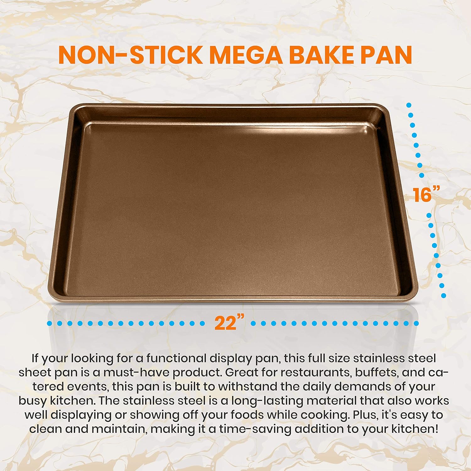 NutriChef Nonstick XL Cookie Sheet Baking Pan - Extra Large 22" x 16" Carbon Steel Oven Baking Sheet for Pastries, Desserts, & More - Dishwasher Safe, Gold