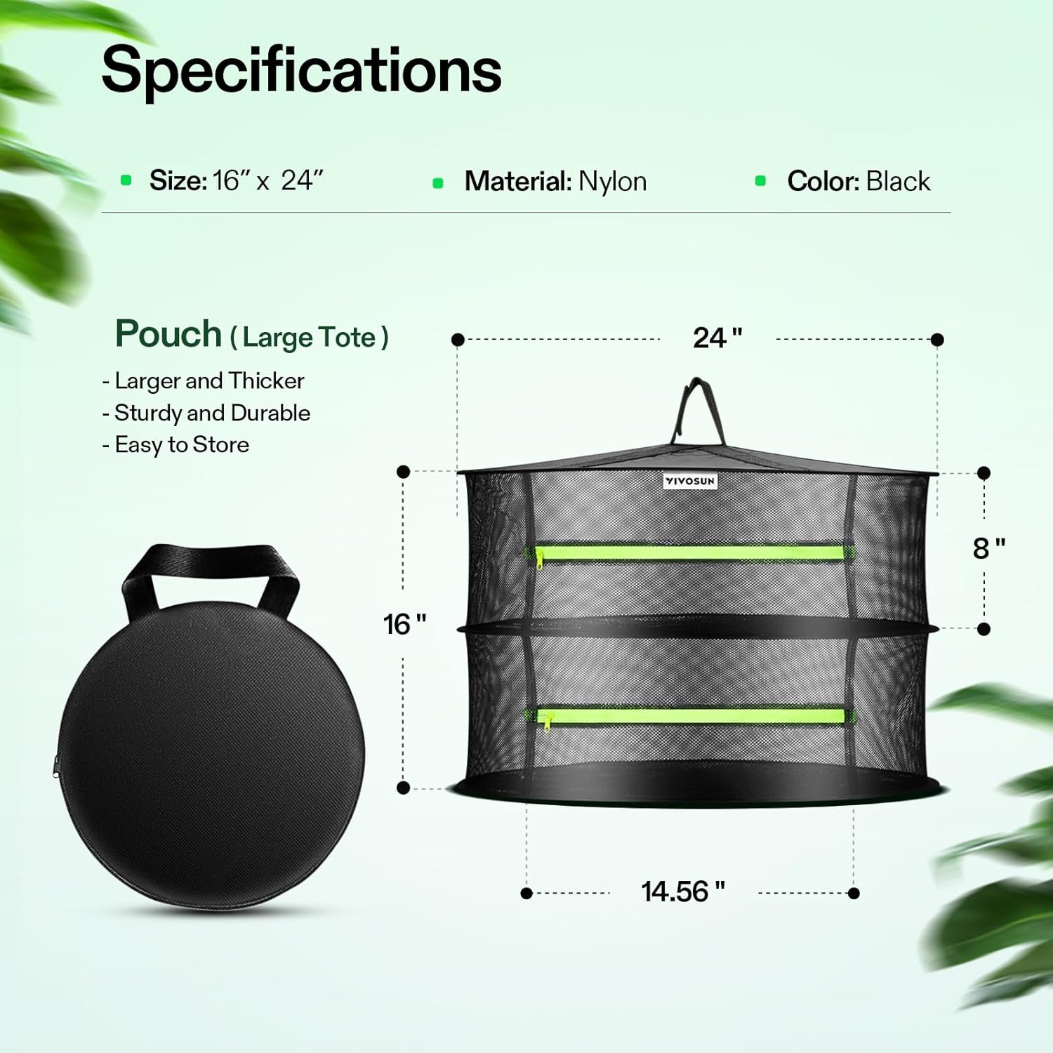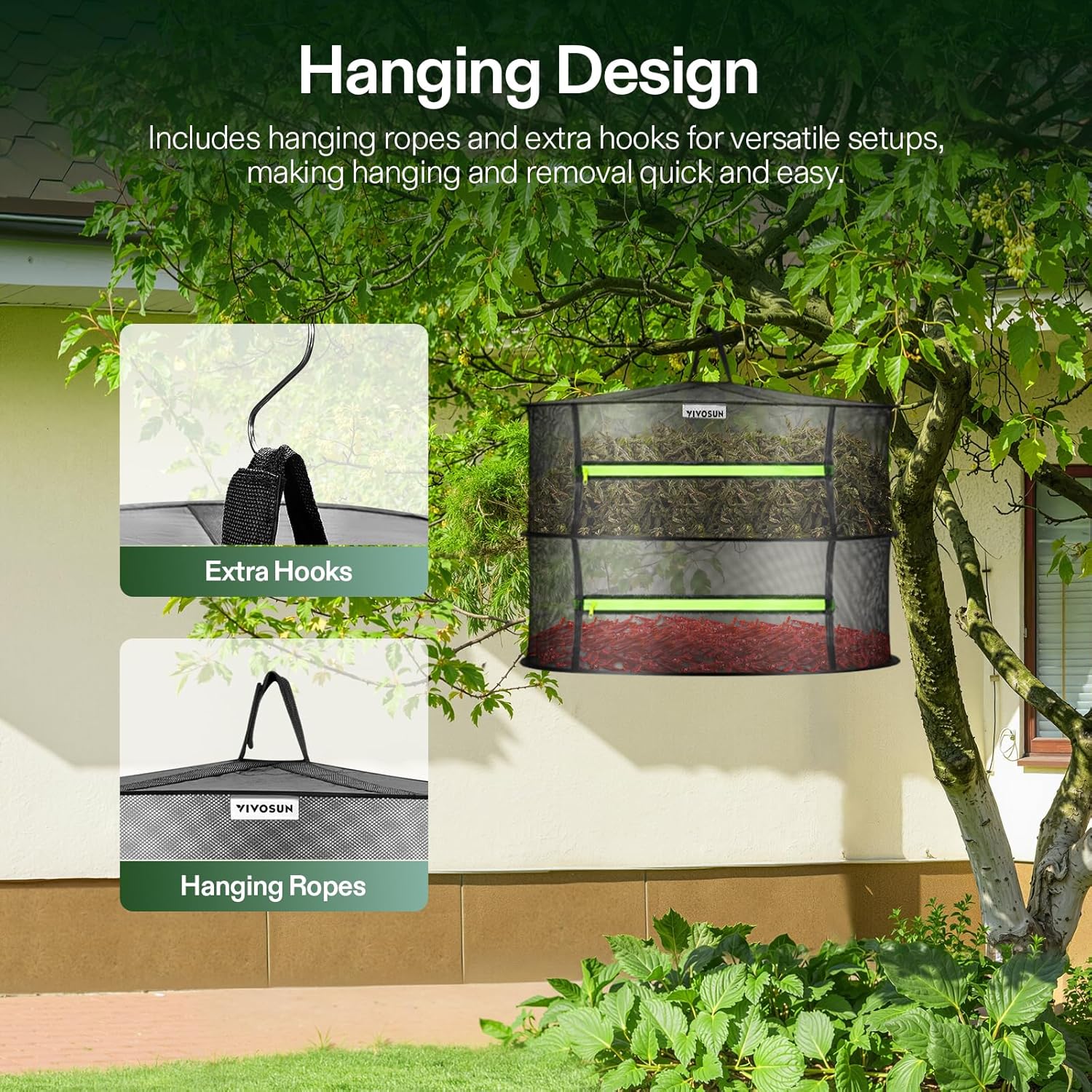 VIVOSUN 2-Layer Mesh Drying Rack Hanging Design with Green Zippers for Dehydrating, Indoor and Outdoor Pruning Shears Included