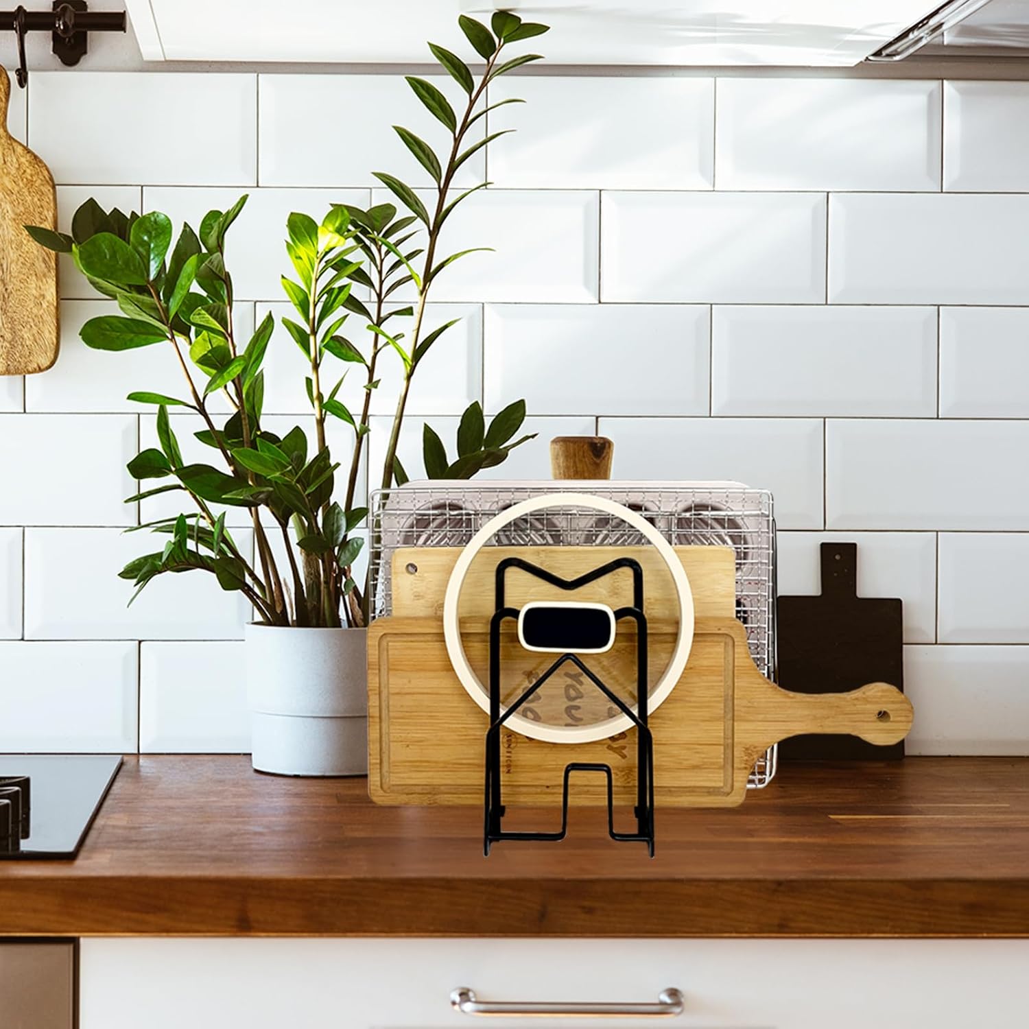 - BUILT TO LAST: Our cutting board rack are made of heavy-duty flat steel with a durable rust-resistant coating, they withstand daily use while lasting for years. The round edge design helps protect against scratches, and the anti-skid backing keeps everything firmly in place.