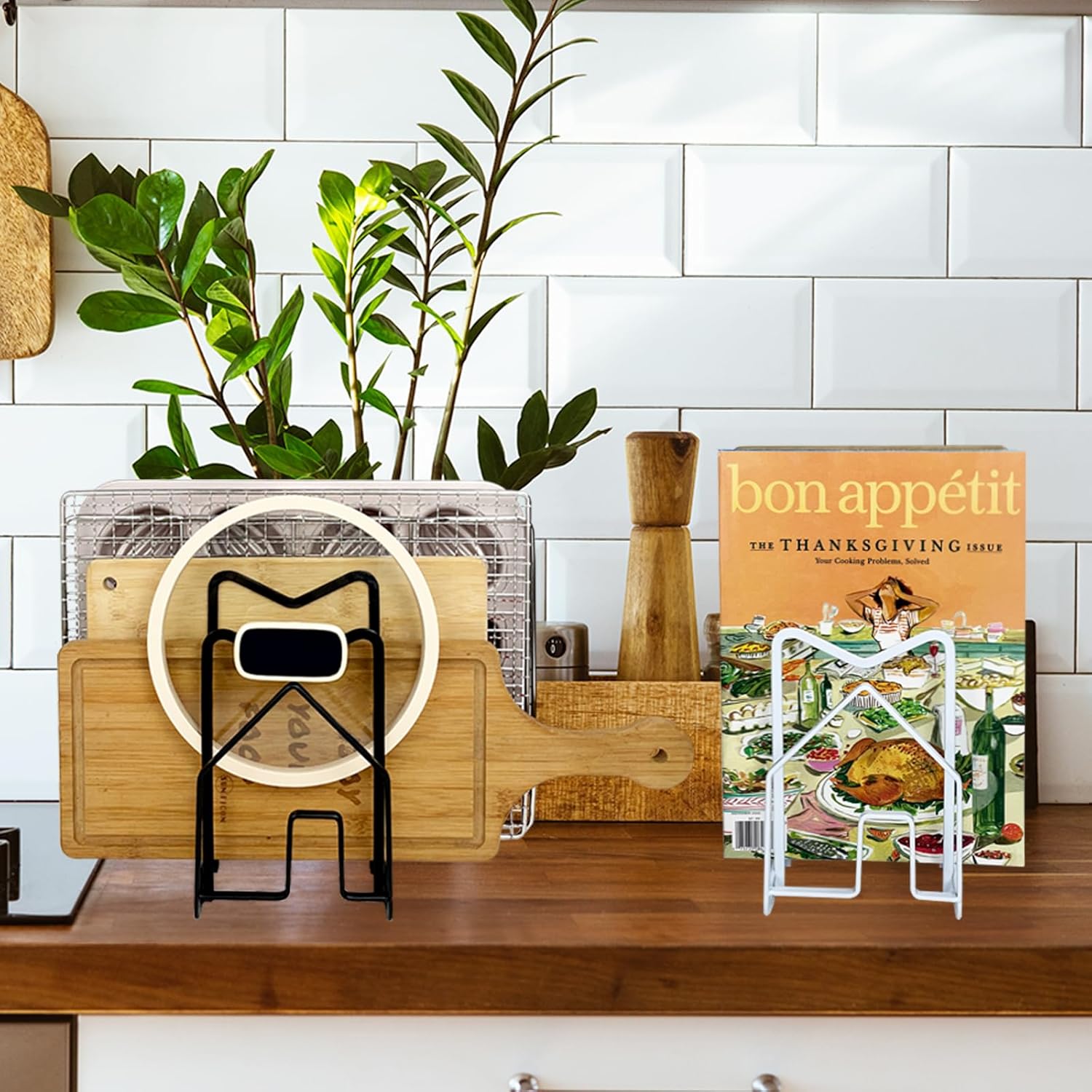 - 2 PACK CUTTING BOARD RACKS : you can use them to store your cutting board, chopping board, lids of your kitchen essentials, plates, cookie sheets, muffin tins, shovels, spoons, and recipe books and so on. they securely hold items and keep them organized, keeping your space mess free.