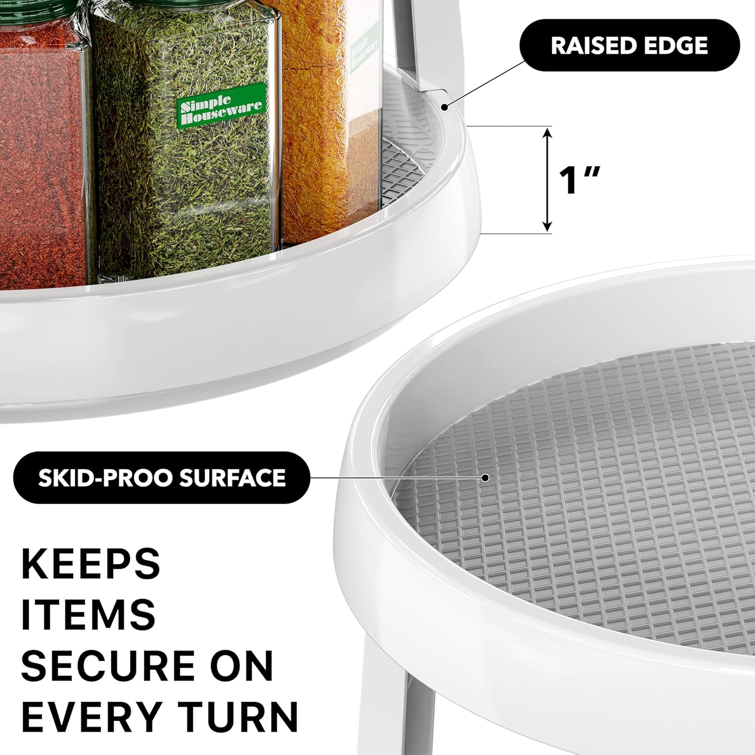 - Skid-Proof Surface with Raised Edge: Both trays feature a textured non-slip surface and a 1" high rim that keeps bottles and jars securely in place while rotating
