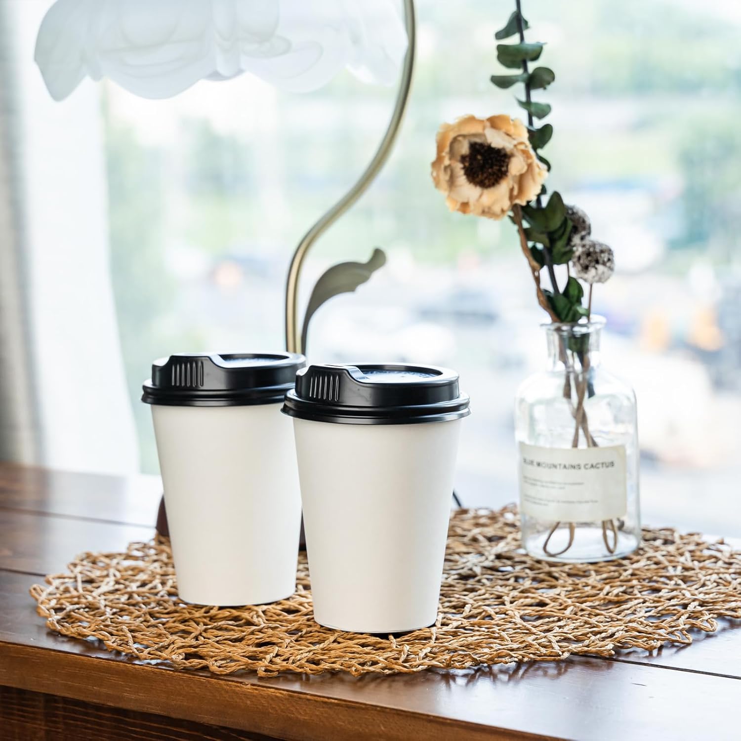 YEEHAW 100 Pack 12oz Coffee Cups with Lids, White Disposable Paper Cups, to Go Coffee Cups for Cafes, Party, and Office