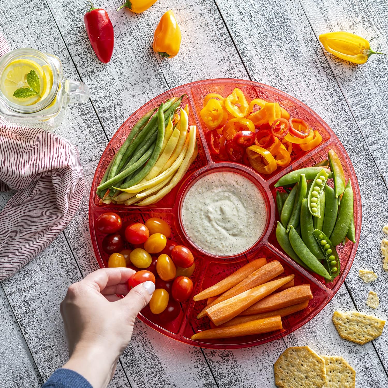 Plasticpro 6 Sectional Round Plastic Serving Tray/Platter (4, Red)