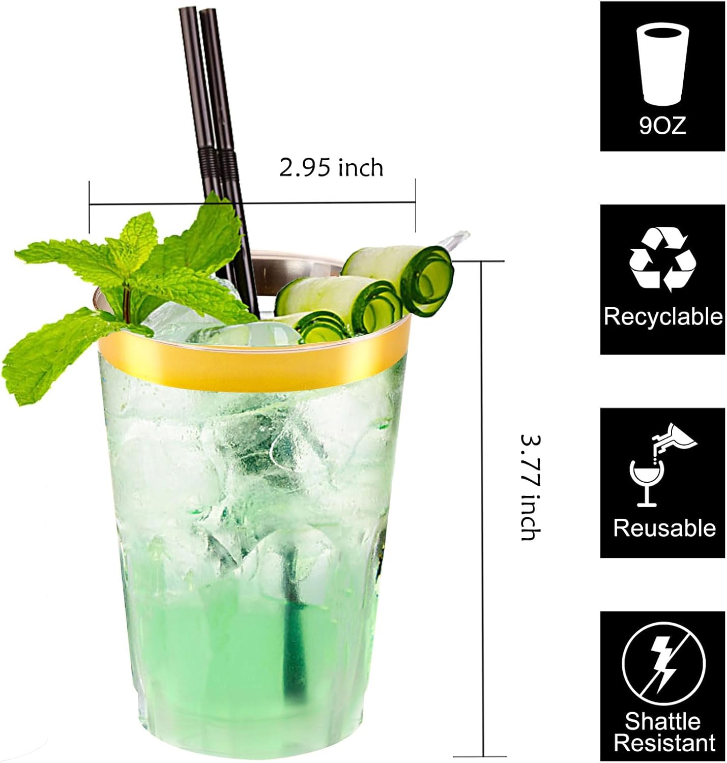 - Save Time: Time is of the essence when you are hosting a party, so you will want to minimize on the clean-up time, throw away all these clear gold rim disposable plastic cups away at the end of the party.