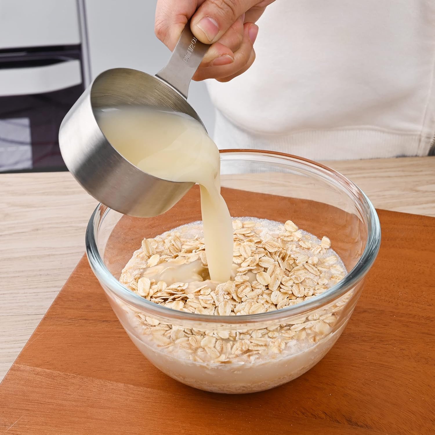Measuring Cups Set, 18/8 Stainless Steel Measuring Cups Set for Baking & Kitchen, Metric & US Metal Measure Cup for Dry & Liquid Ingredients