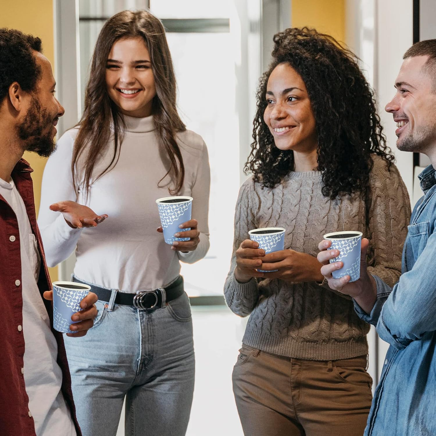 - Blue Paper Cups: This package contains 240 counts 10 oz paper coffee cups, classic blue color cups printed with unique patterns. suitable for any use, such as a home, office, or restaurant