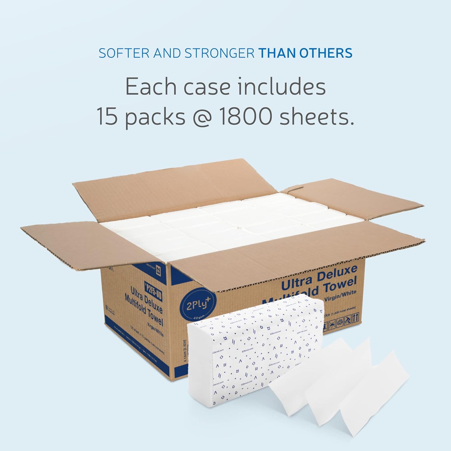 EZbrnd Premium Ultra Deluxe 2ply+ MULTIFOLD Paper Towels, 120 sheets x 15 pk, P2F5-UD (Large Sheet)