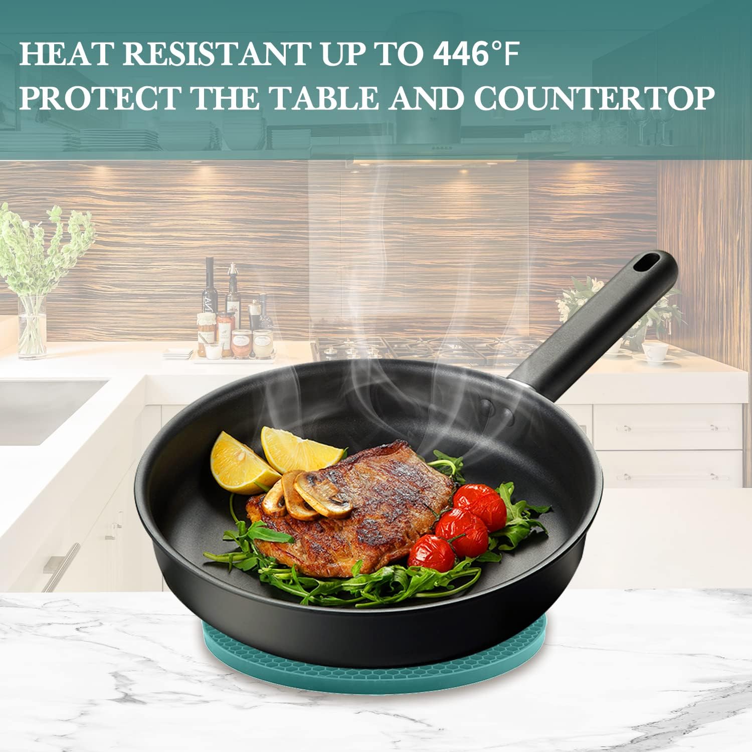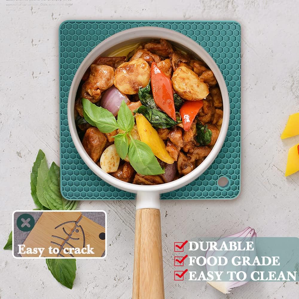 - 💝【DURABLE SILICONE HOT PAD】- Nice kitchen add-on; the color and style are sophisticated. These dark green silicone trivet pads are sturdy, reliable, and not stiff, easy to use and store, thick enough so we can grip pots and pans securely. The non-slip texture means no more spills.