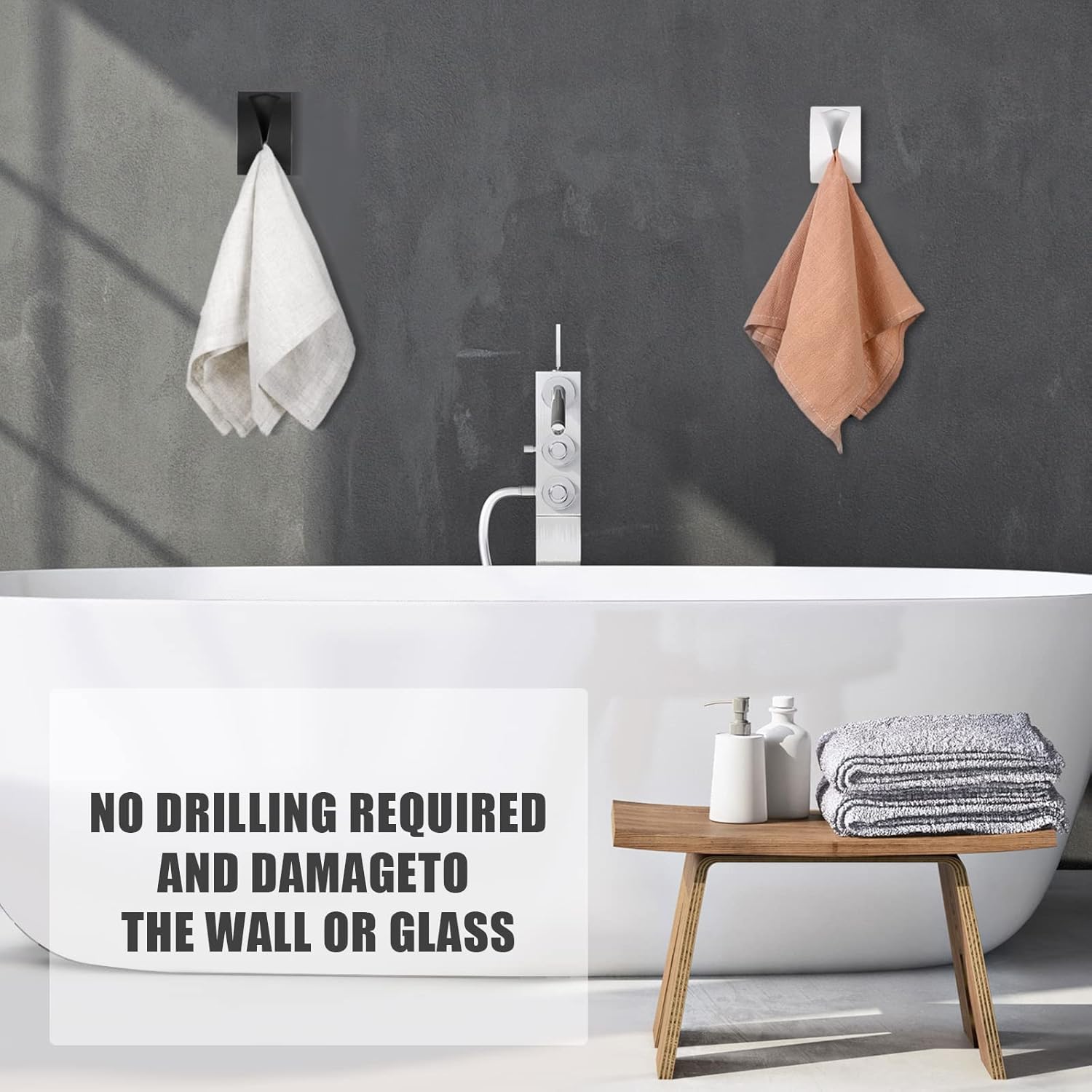 Boao 4 Pcs Self Adhesive Towel Hook Holder Grabber Stainless Steel Kitchen Dish Towel Hook Wall Mount Non Drilling Hangers Rack Hand Tea Holders for Bathroom Accesories Kitchen Gadgets(Black, White)