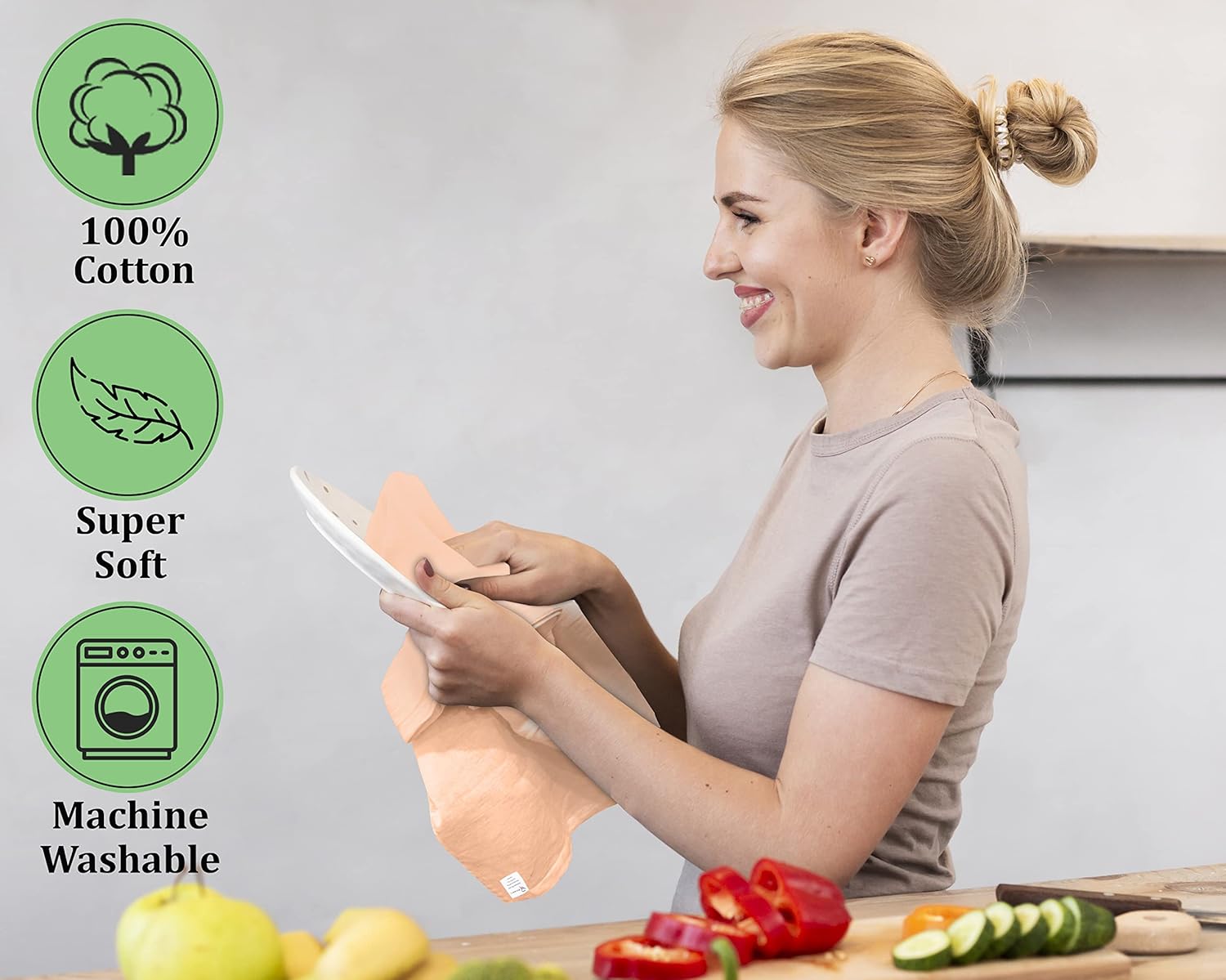 - Washable & Re-Useable: Towels are Machine Washable, Perfectly Reusable & can use Over and Over Again. These are treated to resist shrinkage & minimize lint. Helps to reduce the use of Paper Towels. Wash before Using the First Time to Set the Color, Improve Absorbency & Reduce Lint.