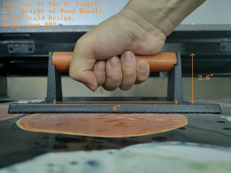 8.3"×4.3" Heavy-Duty Cast Iron Grill Burger Press and Meat Steak with Wood Handle for Blackstone Camp Chef Pitboss Weber Griddle Grills (Rectangle)