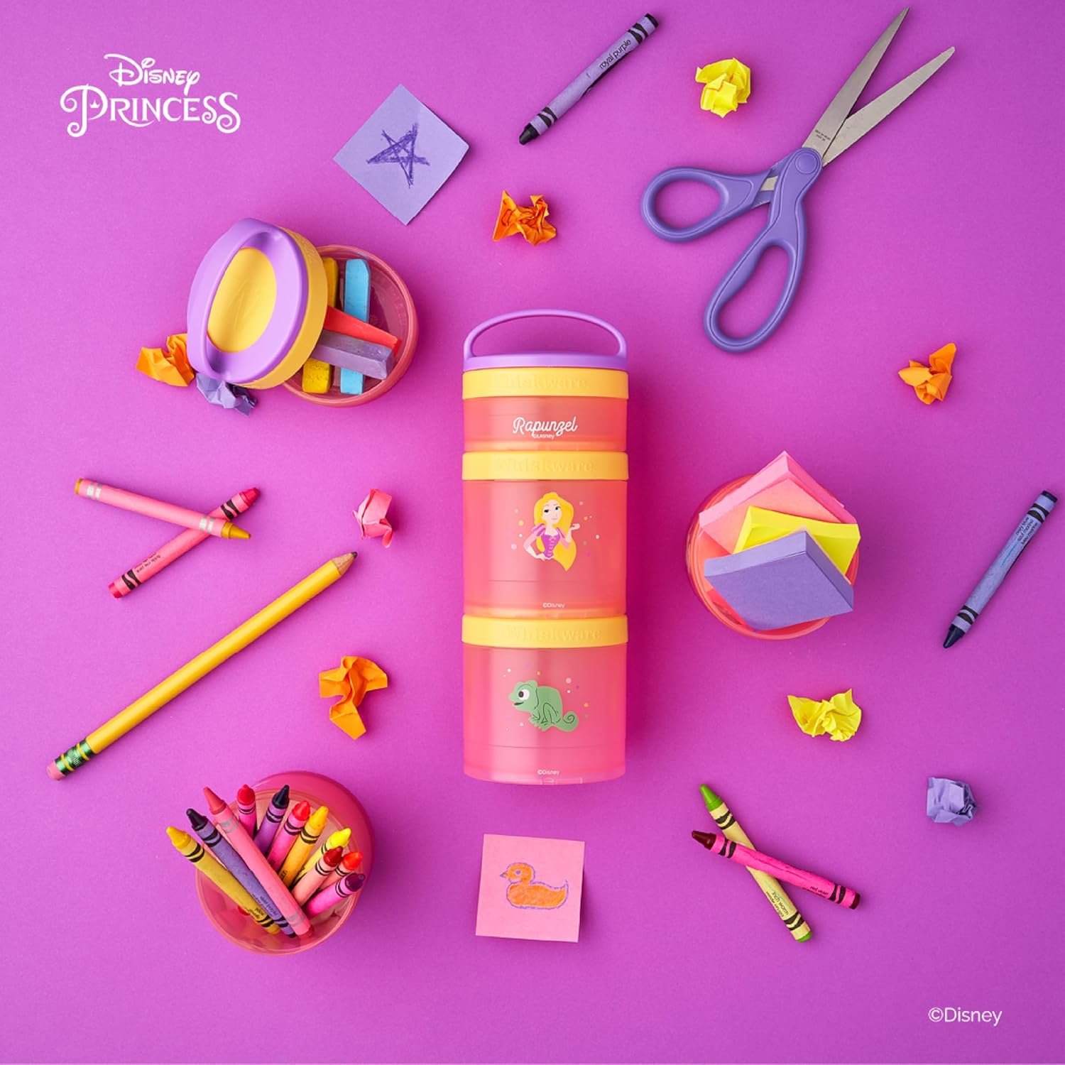 Whiskware Disney Princess Tangled, Stackable Snack Containers for Kids, 3 Stackable Snack Cups for School or Travel, Formula and Cupholder Friendly, Rapunzel and Pascal