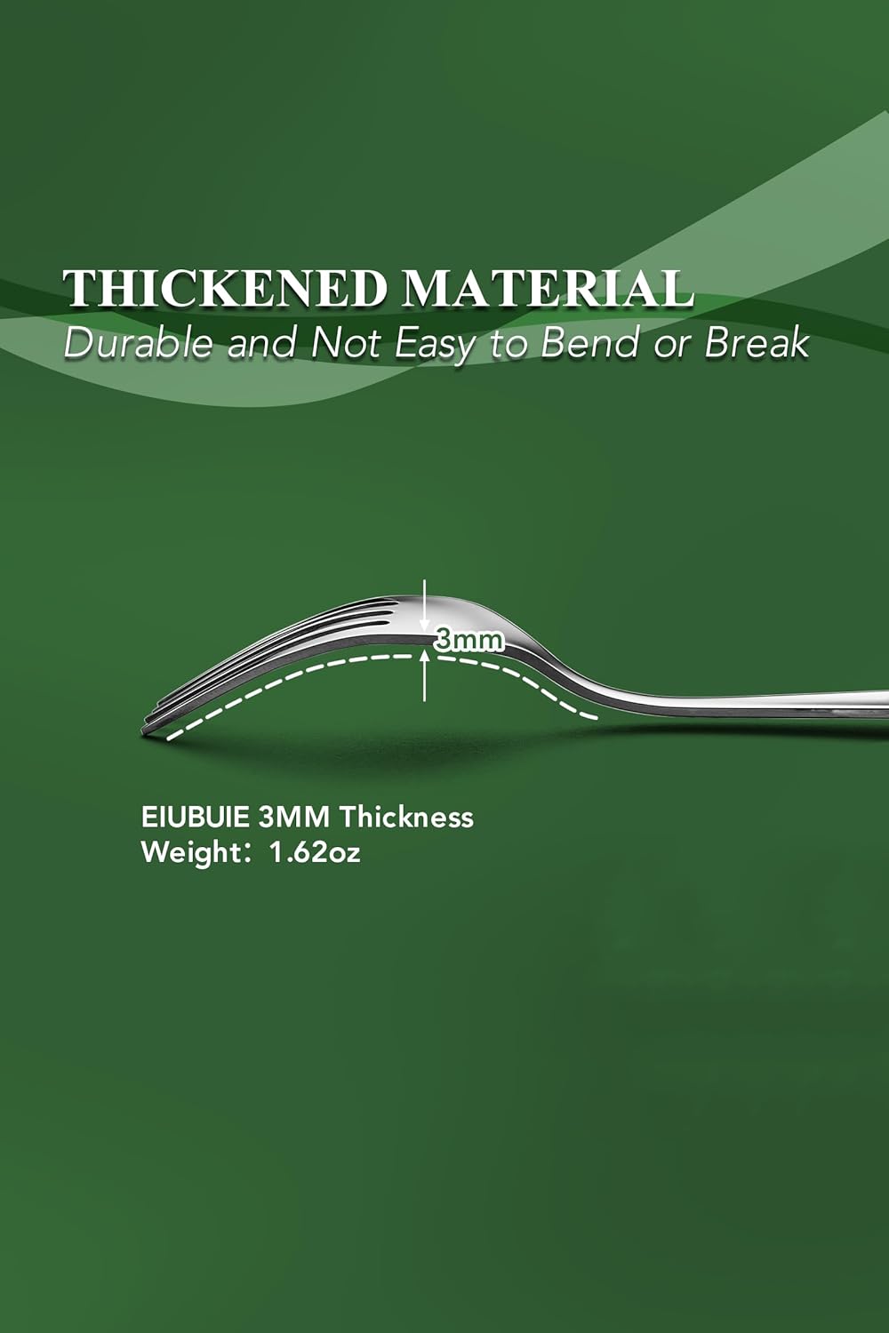 - [Premium Material with Strong Durability and Rust Proof] This stainless-steel silverware set is simple to clean by hand and dishwasher safe; its durability assures that it will not bend easily, allowing you to use it for a long time. And enough safe won't leave residues or smells behind like other materials since composed of high-quality food-grade stainless steel, which is very robust, rust-proof, corrosion-resistant, nickel-free
