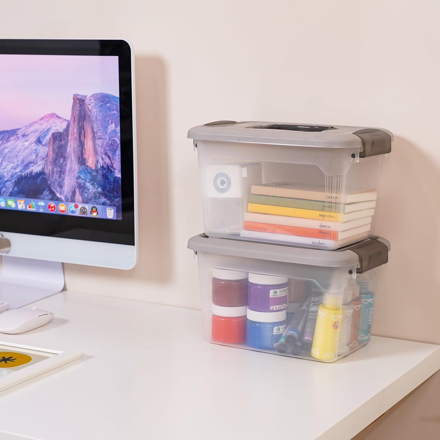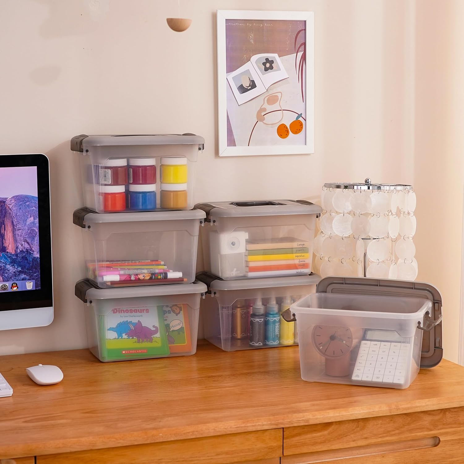Citylife 4 Packs 6 QT Plastic Storage Bins with Latching Lids Stackable Storage Containers for Organizing Clear Storage Box for Garage, Closet, Kitchen