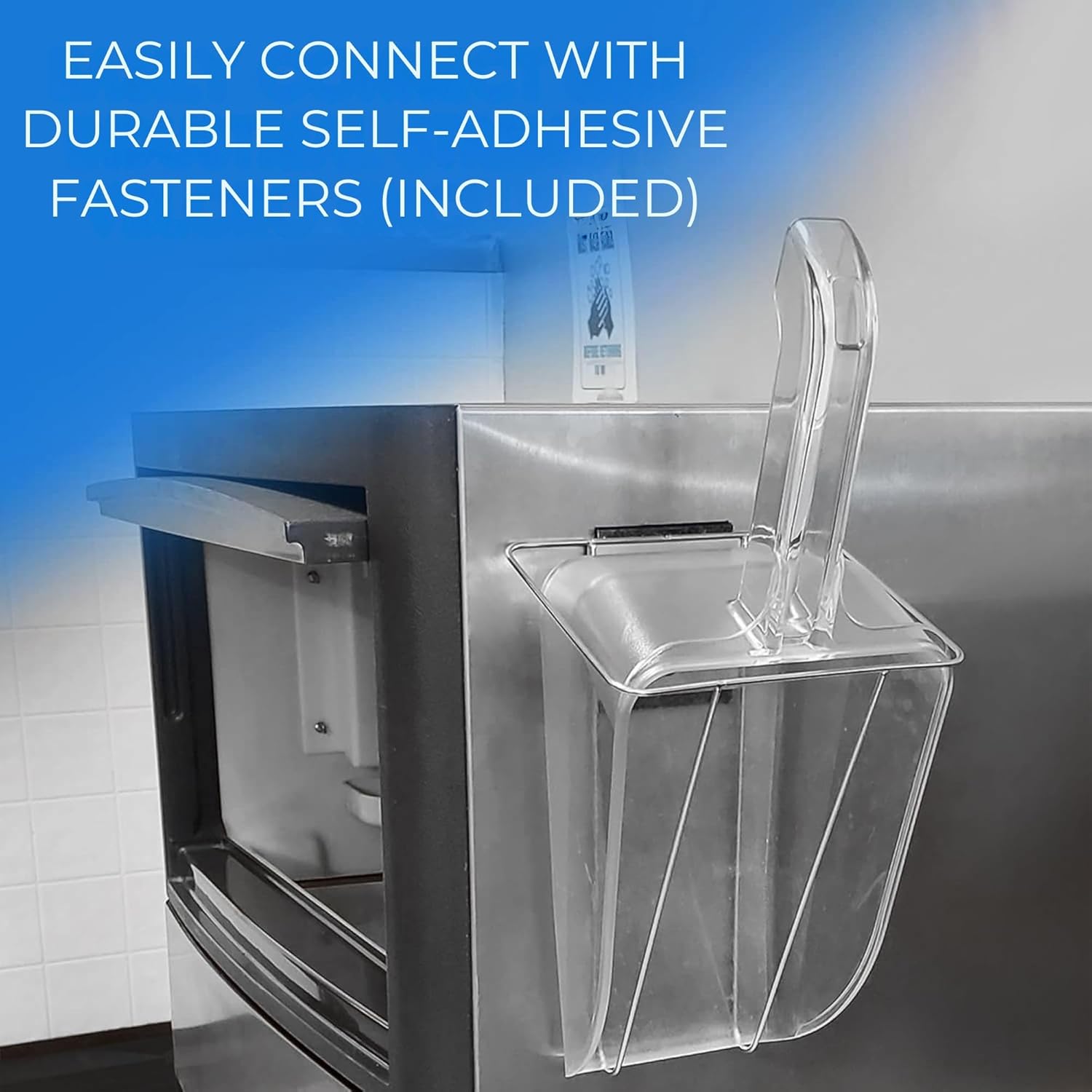 - HOLDER INCLUDED: Quality wire frame holder comes with a heavy duty industrial strength velcro, so it can be wall-mounted or mounted on the side of your freezer or ice machine. Can also be mounted with standard hardware screws (not included)