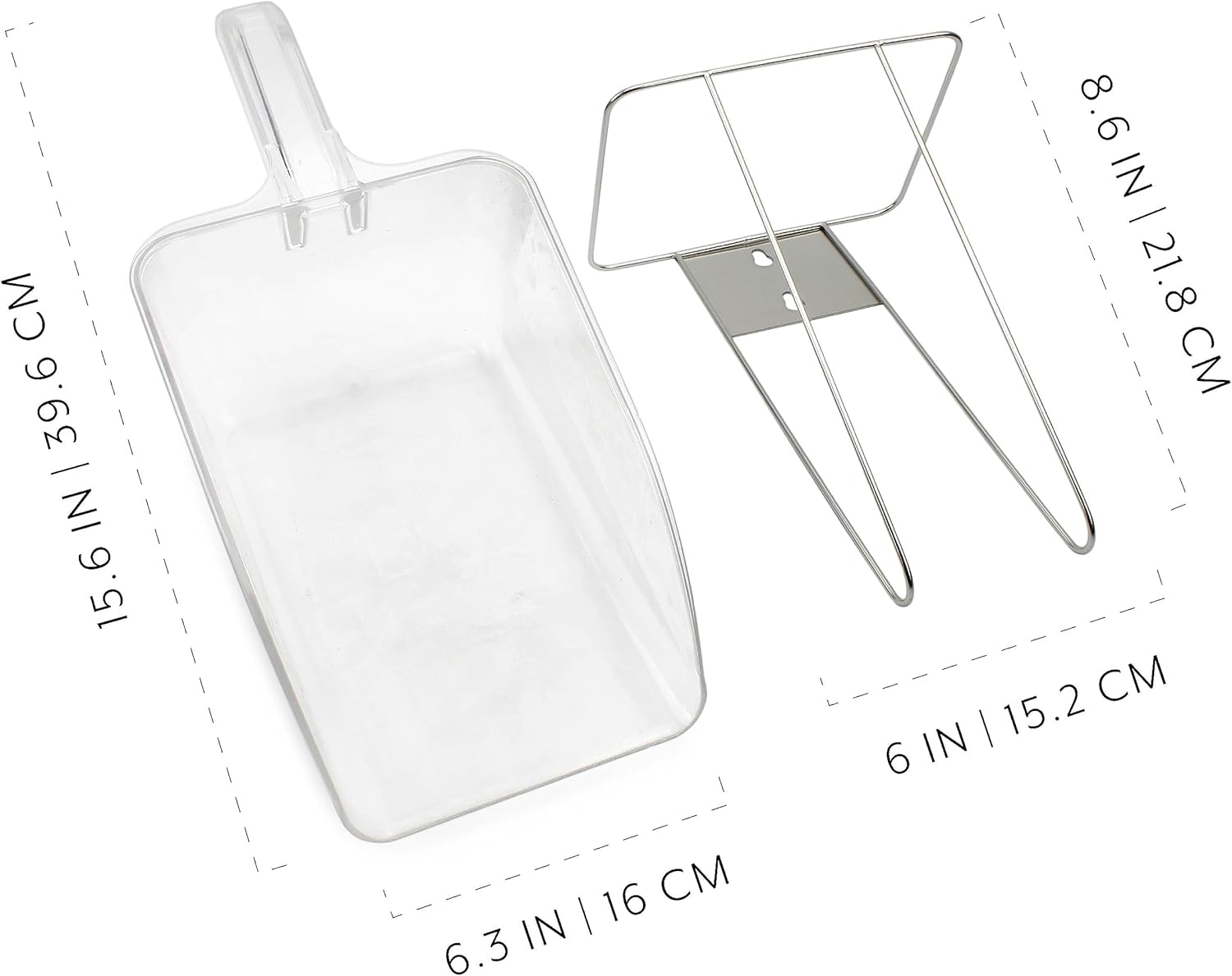 - SIZE: Scoop - 15.6 x 6.3 x 5.5 inches; Scoop Holder - 8.6 x 6.1 x 5; CAPACITY: approx. 7 cups of ice cubes or other ingredients