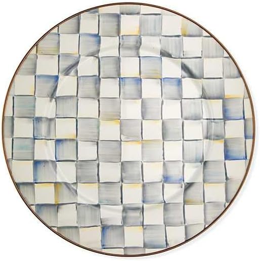 MACKENZIE-CHILDS Enamel Serving Platter, Decorative Serving Platter for Food, 16 Inches, Gray-and-White Sterling Check
