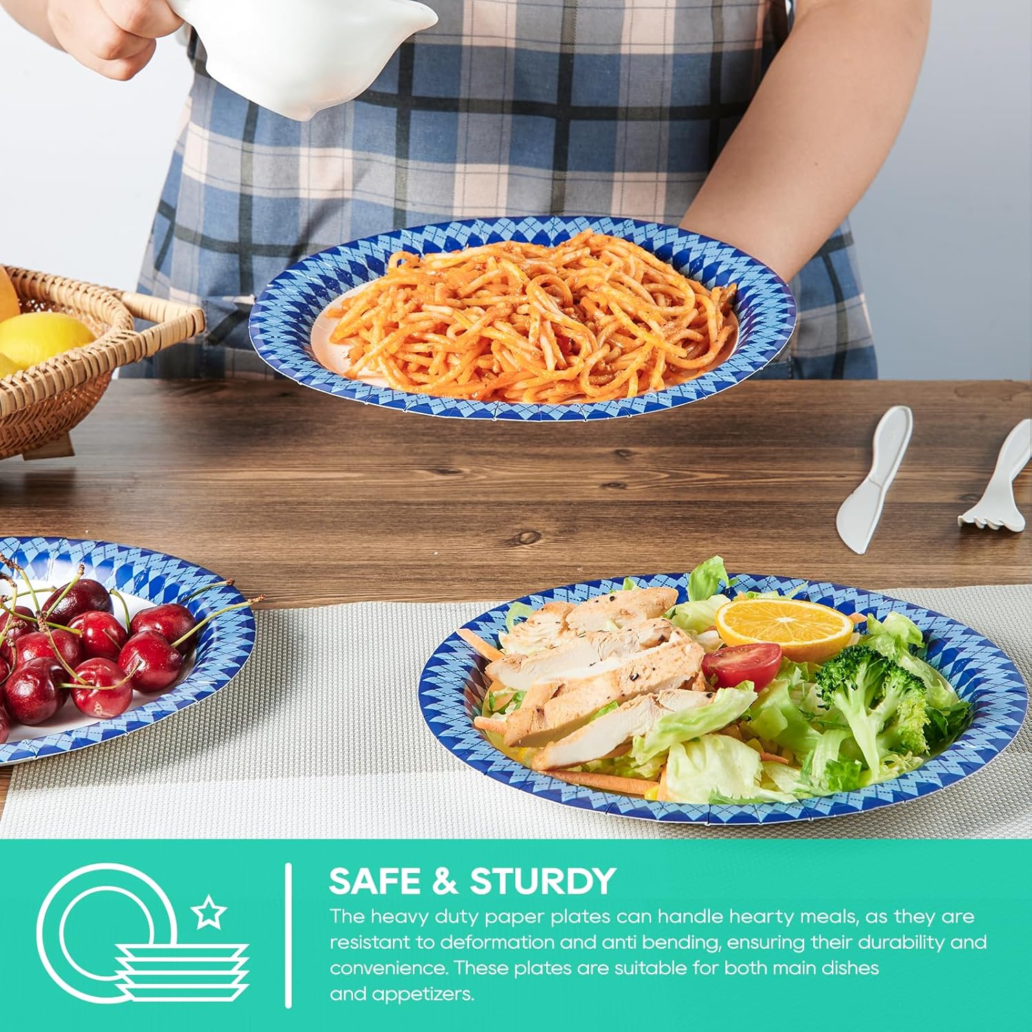 - Everyday disposable paper plates Perfect for dinner parties summer picnics, decorative paper plates with navy pattern diamonds for a variety of themed parties and events