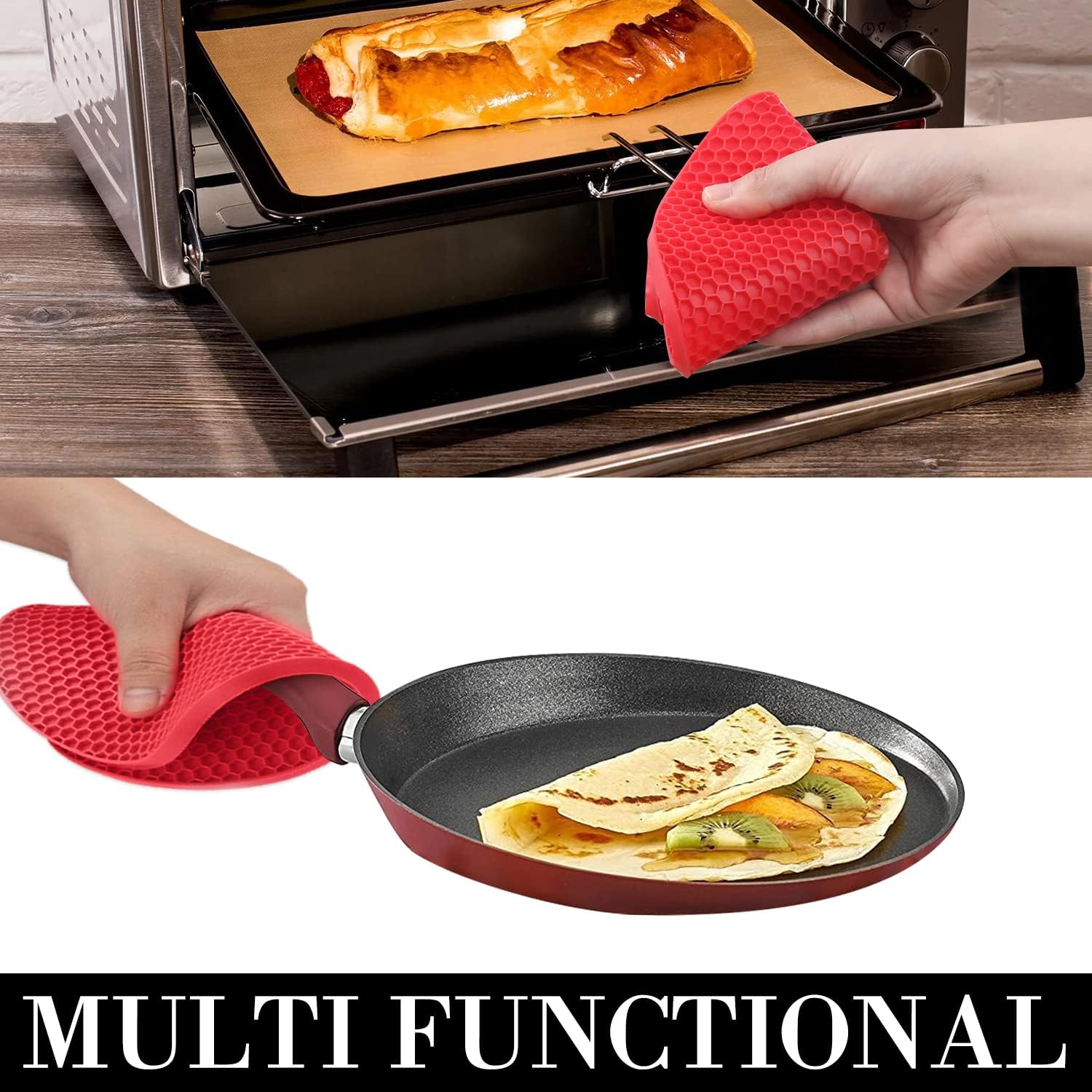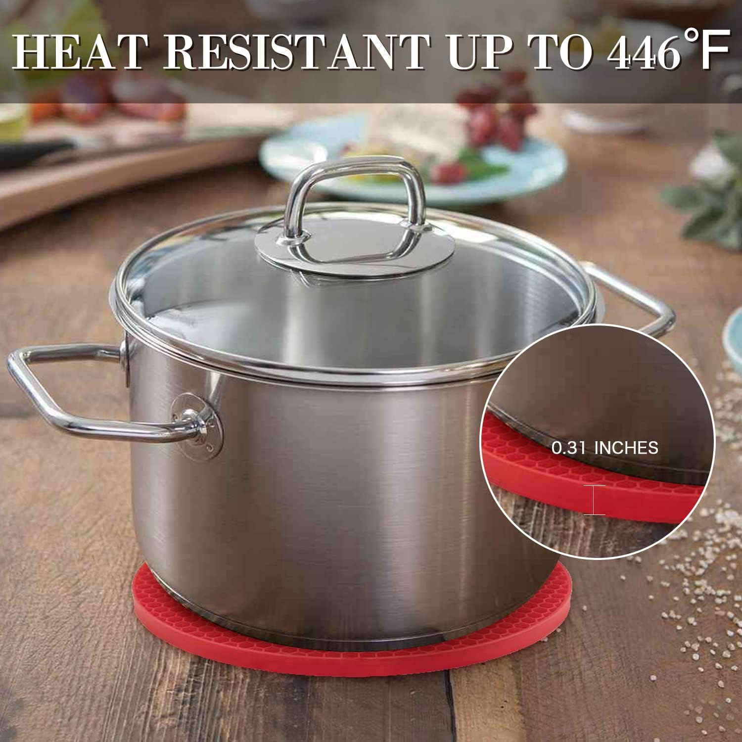 - 💝【HIGH HEAT RESISTANT MAT】:Red trivets for hot dishes work great for hot pans or anything hot to put on the kitchen counter. The potholders for kitchen heat resistant temperature is -104 to +446 ℉, effectively against heat damage, and protect the tabletop from scratching or breaking; oven safe, microwave safe, and dishwasher safe.