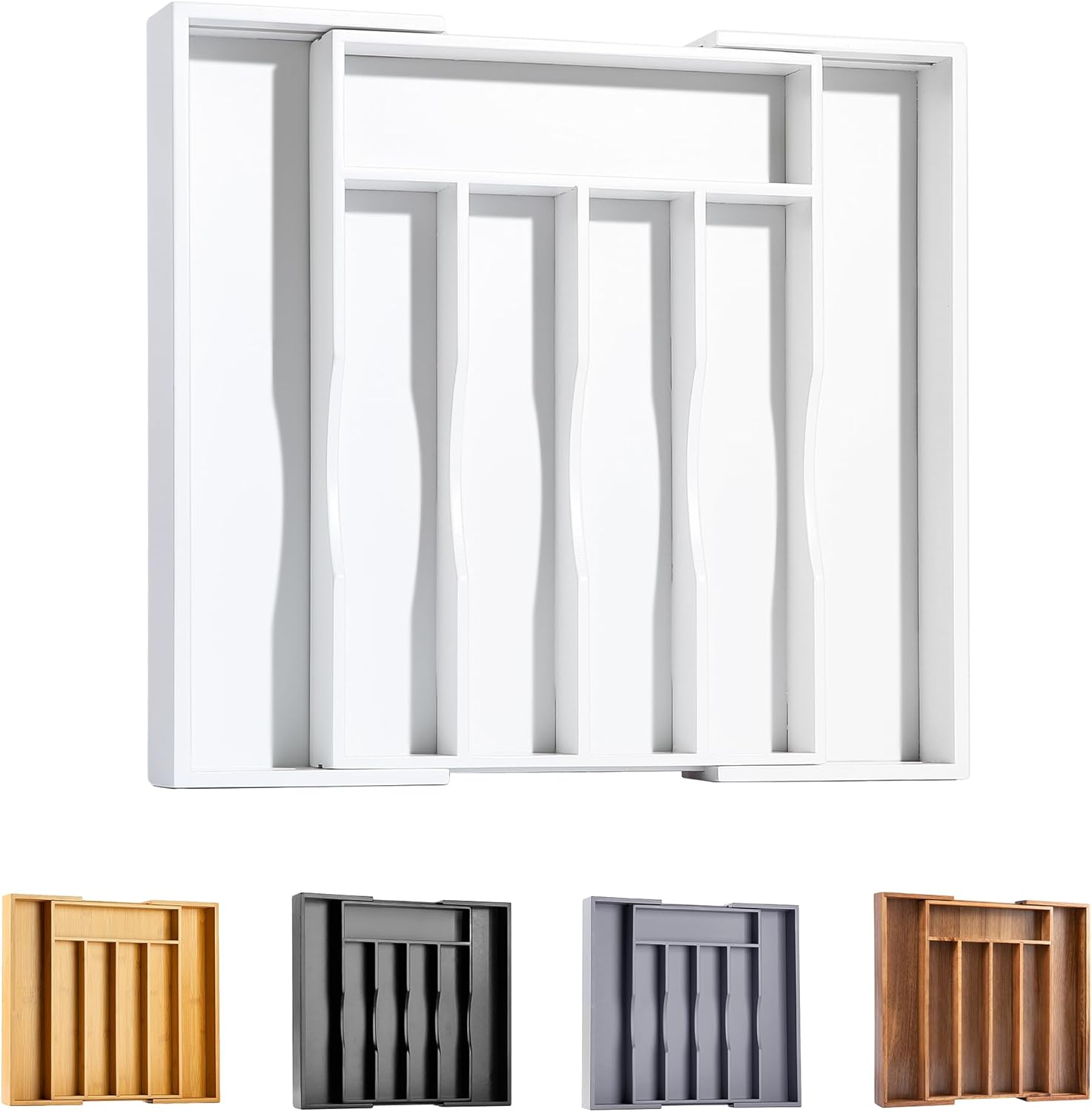 - ✅【Fit your drawer perfectly】Still measuring every kitchen drawer and buying a kitchen drawer organizer of the same size? Our bamboo silverware drawer organizer is designed with 5-7 compartments. Thanks to its adjustable features, our expandable drawer organizer can be expanded from 10 to 15 inch wide, Perfect for any kitchen drawers.