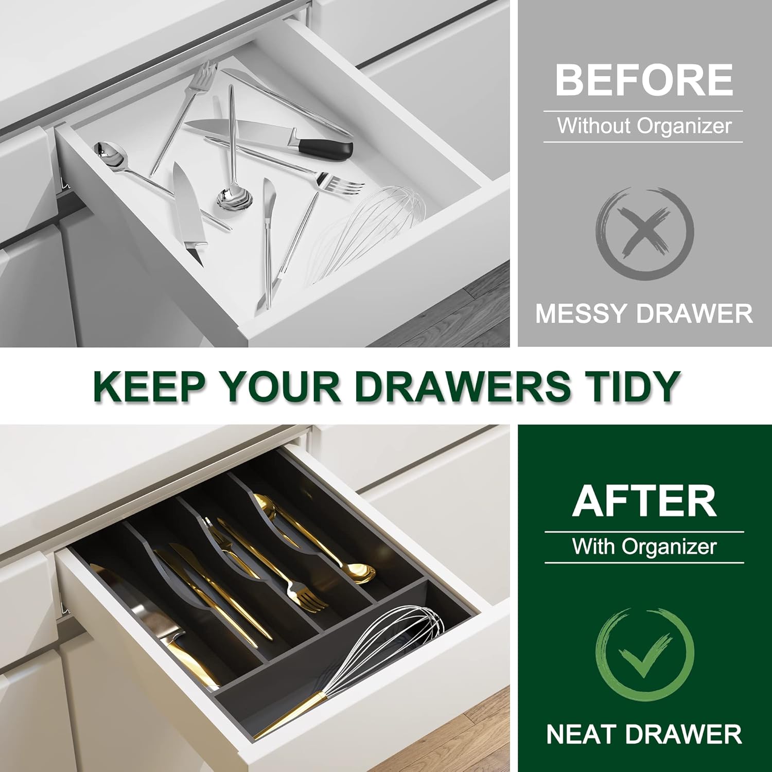 - 【Keep all you need at hand】Stop worrying about finding utensils when you cook. 5 deep compartments make our silverware organizer a good assistant for cooking. When all every cutlery is neatly arranged in our drawer cooking is also become easier. Clear your flatware & utensil and enjoy cooking with a cheerful heart.