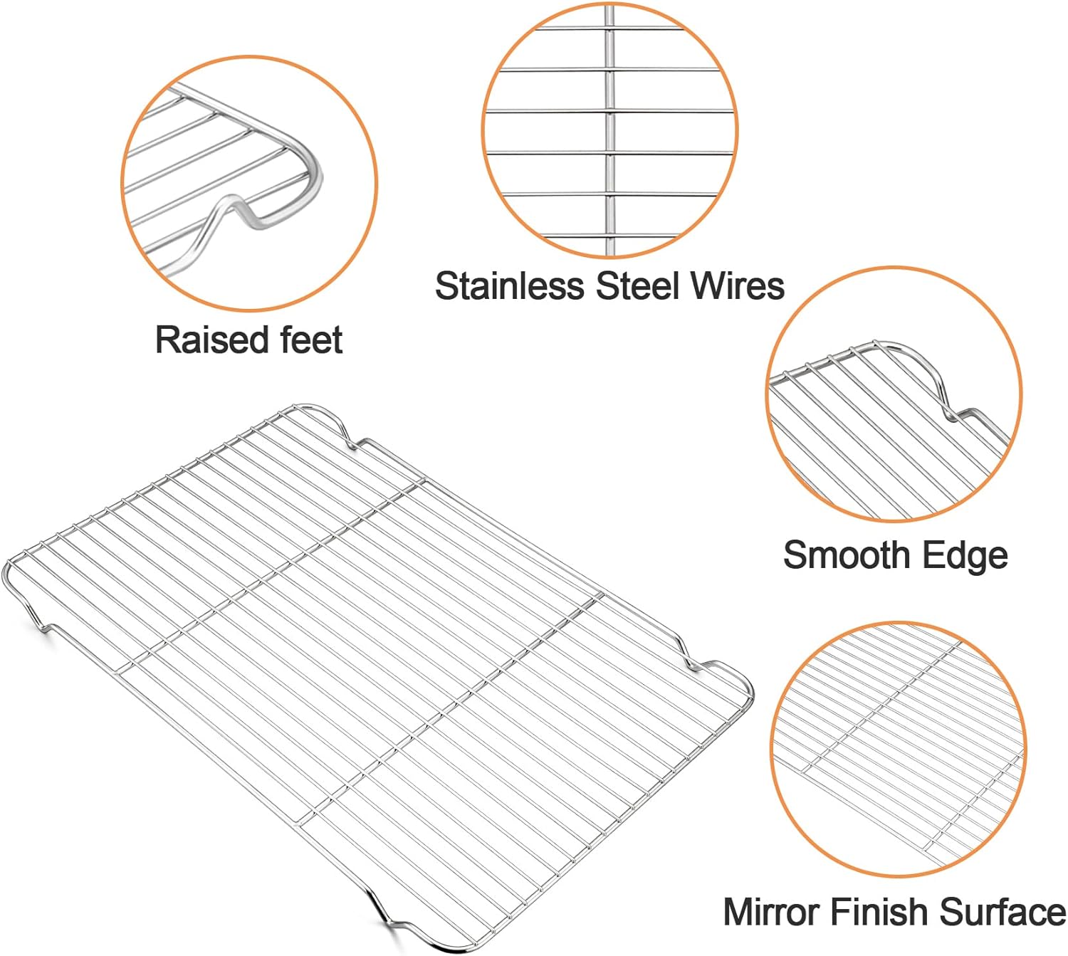 - EASY CLEAN – Cookie sheet pans and steel cooling racks with superior mirror finish surface to reduce food residue sticking, Both can run into dishwasher to save your labor and time, Easy to clean even by hands