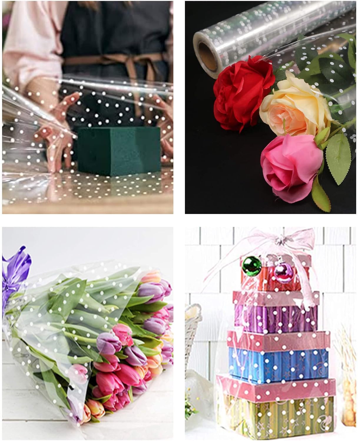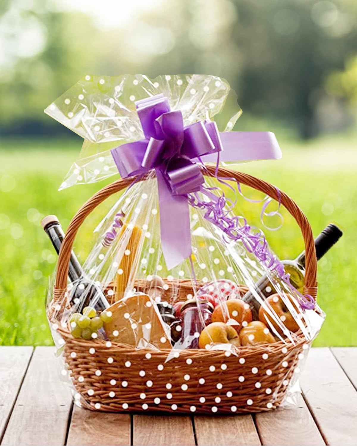 - Wide Uses:This cellophane wrap for gift baskets is perfect for making exquisite gifts on any occasion. From Christmas gifts, wine bottles, photo frames, and flower arrangements, to fruit baskets, wedding gifts, biscuits, snacks, sweets, silent auctions, handicrafts, and more, the possibilities are endless.