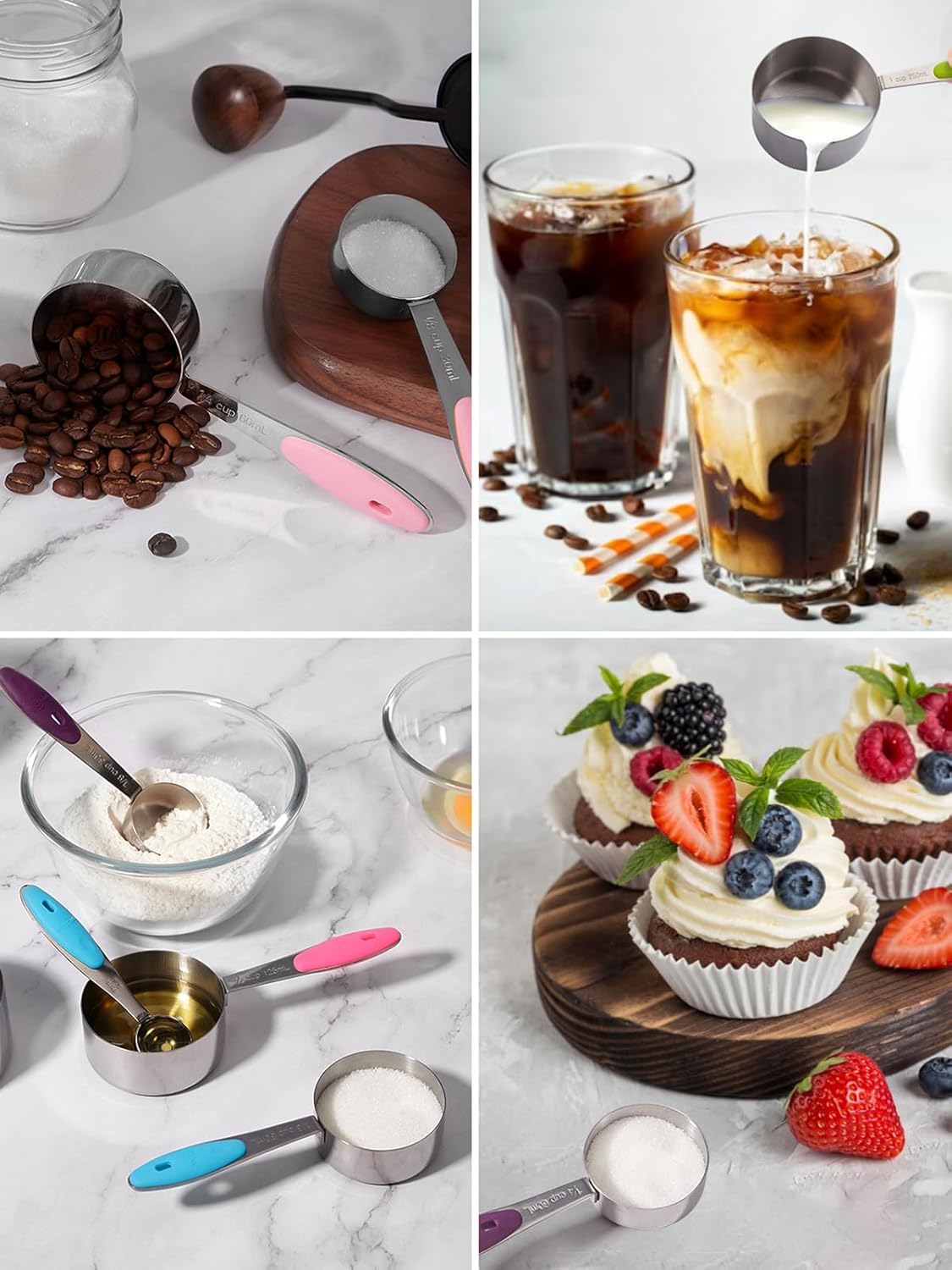 Joyhill Stainless Steel Measuring Cups and Spoons Set of 10 Piece, Nesting Metal Measuring Cups Set with Soft Touch Silicone Handles for Dry and Liquid Ingredients, Cooking & Baking (Black)
