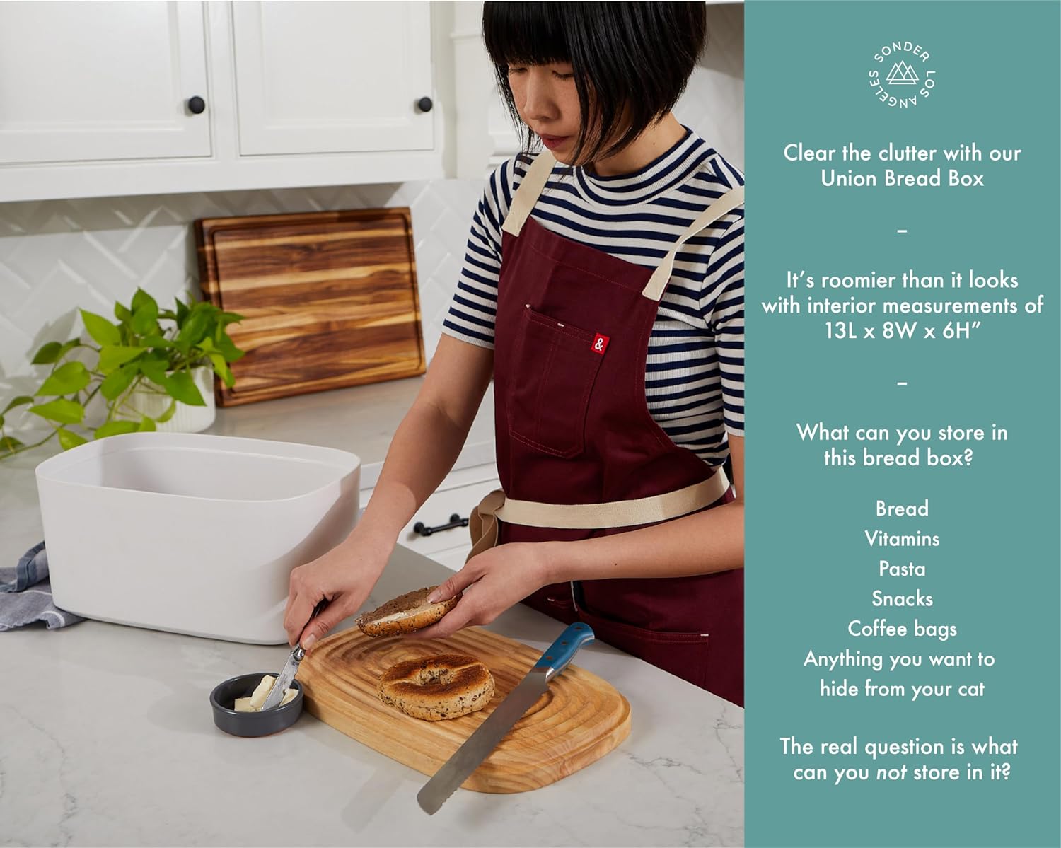 Sonder Los Angeles, Modern Bamboo Fiber and Recycled Plastic Bread Box (White) for Kitchen Countertop with Reversible Cutting Board Lid, Homemade Bread Bin Storage Container 14.25 x 9.25 x 7 in