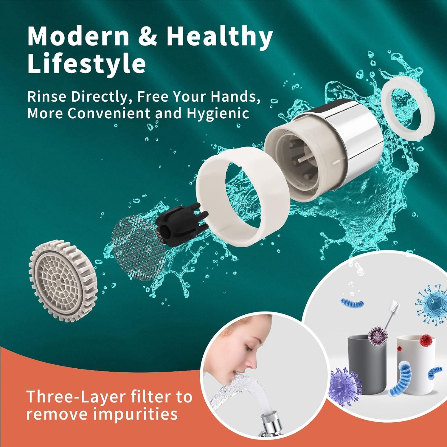- 【Premium Brass & ABS Material 】CECEFIN faucet extender is made of solid brass connectors & arm, ABS aerator body, multi-layer plating surface for durability, anti-rust and self-cleaning. Three-layer splash filter inside of aerator to impurities such as sand sediment and rust, rinse your mouth directly, more convenient and hygiene. Pressurized construction saves water while bringing more comfortable and refreshing experience