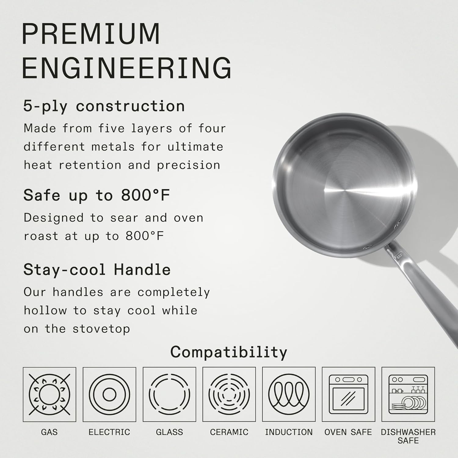 - Superior Quality - Made from 5 layers of premium metal for professional-quality heat distribution