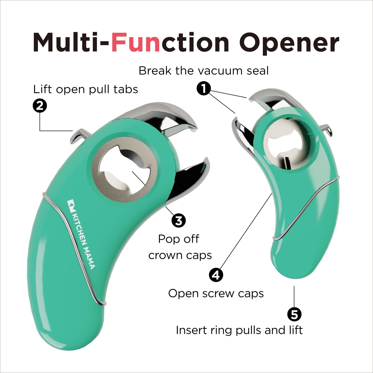 Kitchen Mama Epic One Multifunction Opener: Magnetic Bottle Opener, Beer Soda Opener, Effortless Jar Lid Opener for Seniors and Elderly with weak Hands and Arthritis, Essential Kitchen Gadget (Teal)