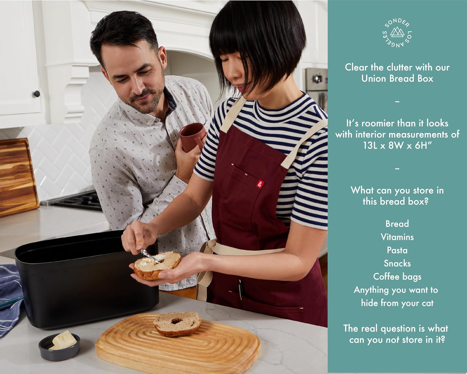 - Keep Counters Crumb Free - with the Sonder LA Union Bread Box. Measuring 14.25 L x 9.25 W x 7 H", this storage container is inspired by Japanese Minimalism and is perfect for holding fresh baked sourdough bread, pre-packaged loaf, rolls, scones, bagels, muffins, and more! Comes packaged in a beautiful gift box, making it the ideal present for Mother's Day, Father's Day, birthdays, Christmas, or just because. Perfect for any occasion for the home baker.
