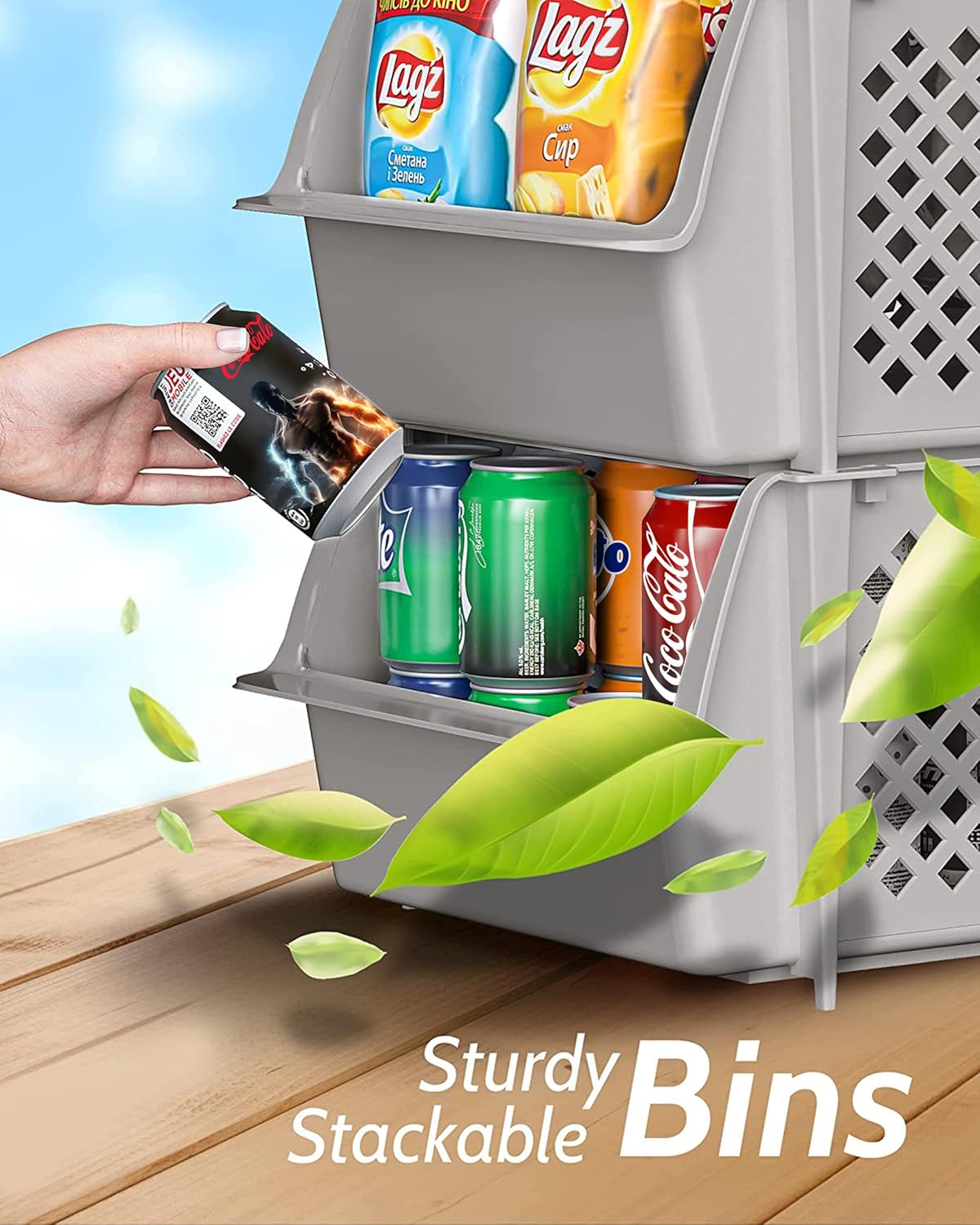 - KEEPS ESSENTIALS ORGANIZED AND VISIBLE - Stackable bins hold foods, toys, utensils, and toiletries without bending off. Set of 4, Each bin size: 11.5” x 14.5” x 7”.