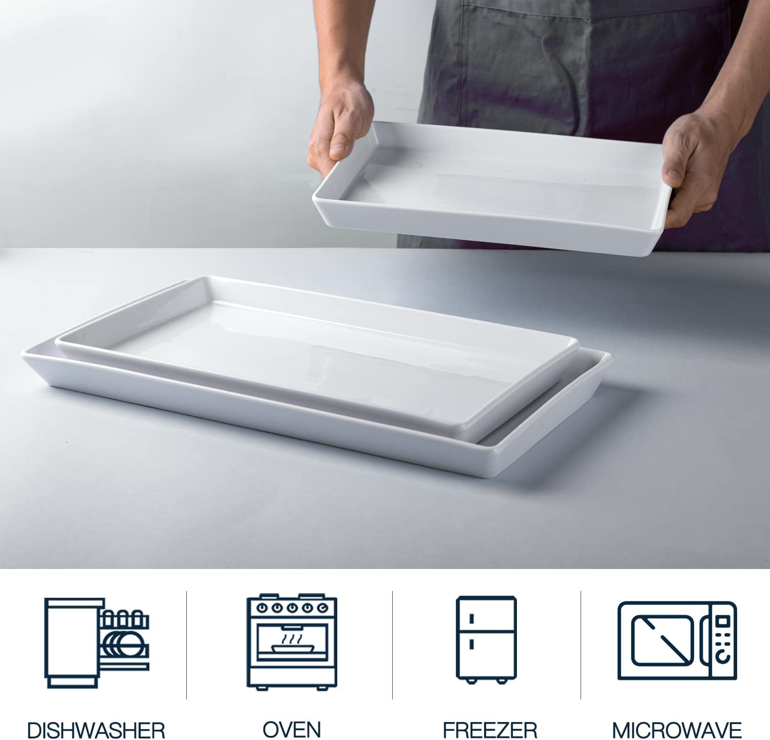 - Healthy and Safty: Lead-Free white serving platters are made of high-fire quality porcelain, it makes our rectangle plates strong and safe enough to put in the microwave, freezer, dishwasher and oven. Easier for hand-holding, effective for anti-slipping.