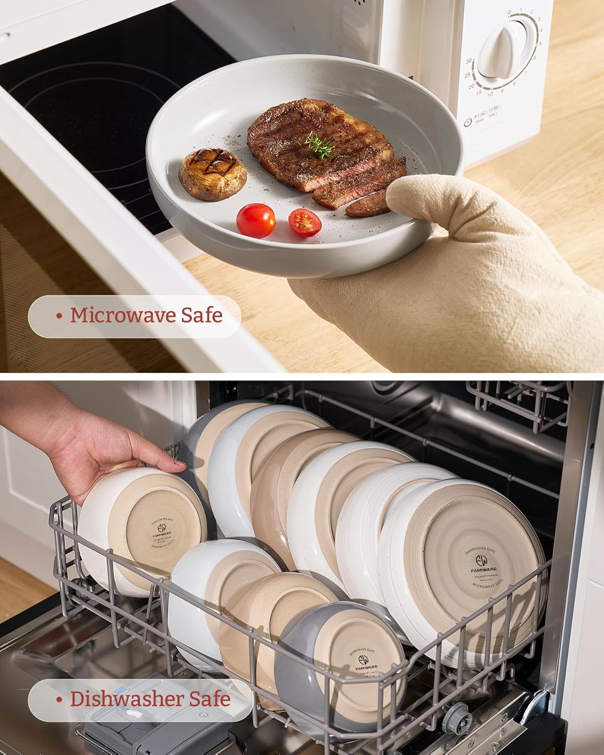 - 【DISHWASHER AND MICROWAVE SAFE】Our pasta bowls have passed microwave and dishwasher safe testing at internationally accredited laboratories. Each plate and bowl is dishwasher safe and microwave safe.