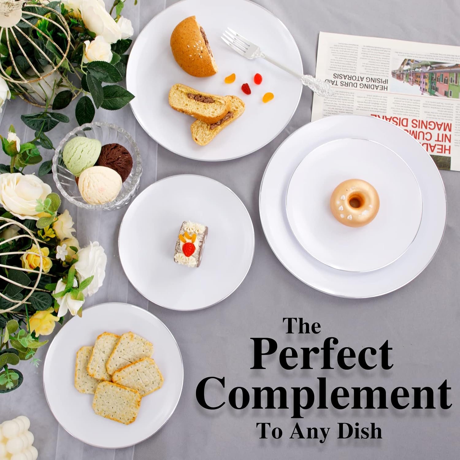 - FOR EVERY OCCASION: KIRE white and silver plastic plates that are suitable for a variety of social events, such as for party, weddings, Halloween, Thanksgiving, Christmas, holidays, suitable for all occasions